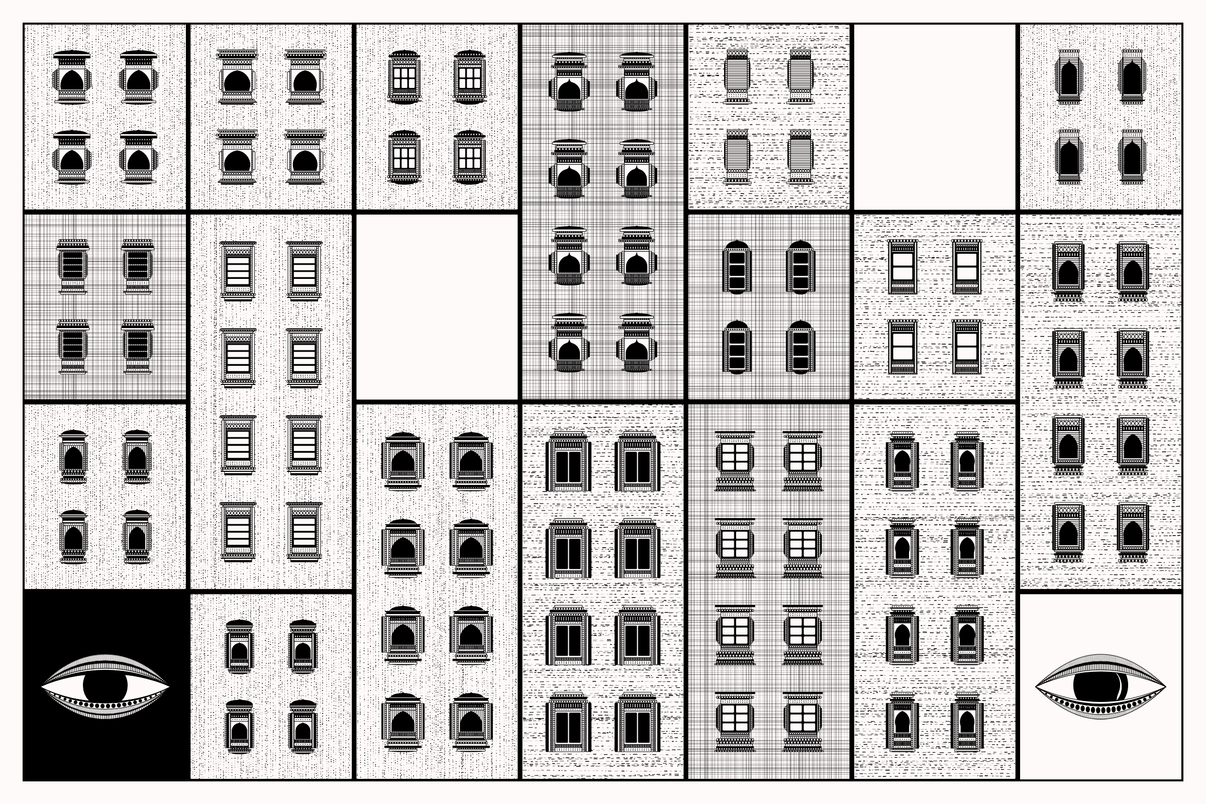 The algorithms and decision-making encoded into this generative art project intentionally imitate Fahad’s approach on traditional mediums - composition rules, textures, and overall themes. The visual elements are inspired by Fahad’s memories from his nomadic life. You’ll find intricate windows from Rajasthan, massive Egyptian pyramids rising from the horizon, a density of civilization only seen in New York, and the moon - a comforting and shared sight no matter where you stand.