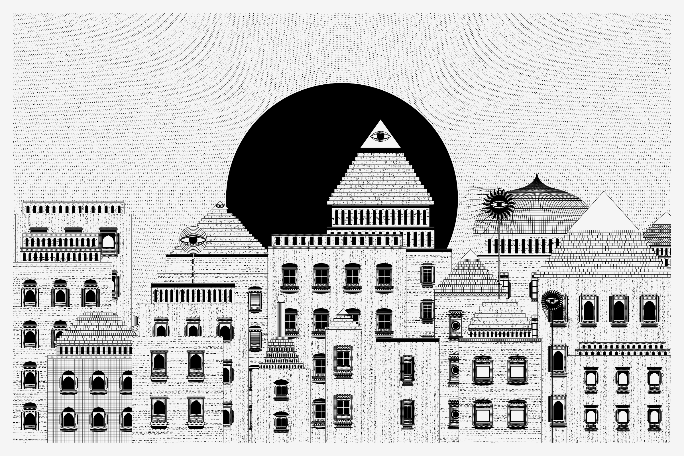 The algorithms and decision-making encoded into this generative art project intentionally imitate Fahad’s approach on traditional mediums - composition rules, textures, and overall themes. The visual elements are inspired by Fahad’s memories from his nomadic life. You’ll find intricate windows from Rajasthan, massive Egyptian pyramids rising from the horizon, a density of civilization only seen in New York, and the moon - a comforting and shared sight no matter where you stand.