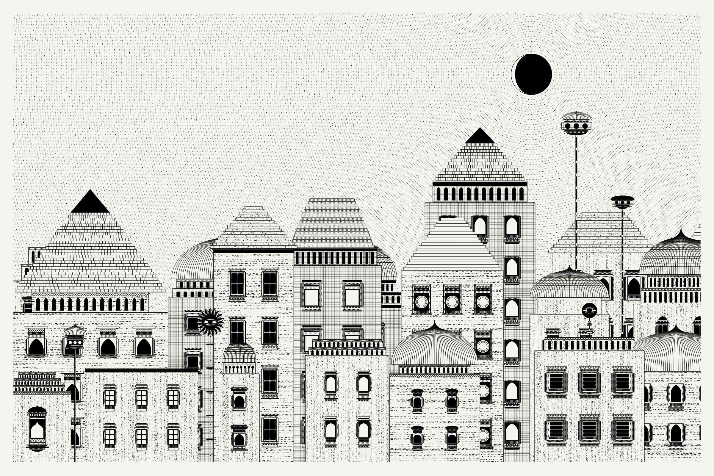 The algorithms and decision-making encoded into this generative art project intentionally imitate Fahad’s approach on traditional mediums - composition rules, textures, and overall themes. The visual elements are inspired by Fahad’s memories from his nomadic life. You’ll find intricate windows from Rajasthan, massive Egyptian pyramids rising from the horizon, a density of civilization only seen in New York, and the moon - a comforting and shared sight no matter where you stand.