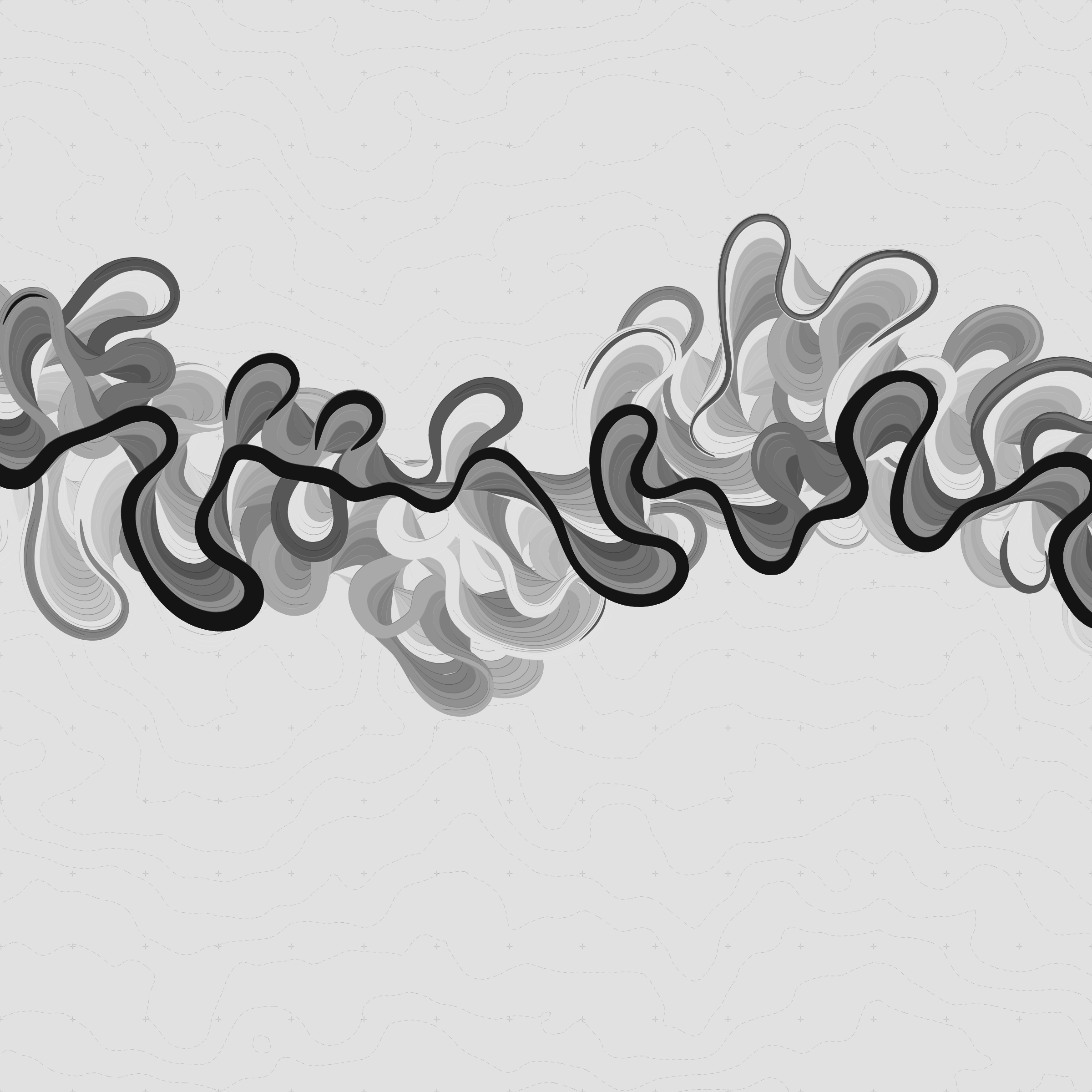 Ancient Courses is a generative experience that explores the aesthetics of meandering rivers and the settlements that form on their banks. The design is graphic and cartographic with bold color palettes rendered against map iconography and line sensibility. From the river banks, roads stretch across the landscape: sometimes a single access road, other times sprawling towns. The river meandering is simulated via a custom algorithm which closely models the real world process.