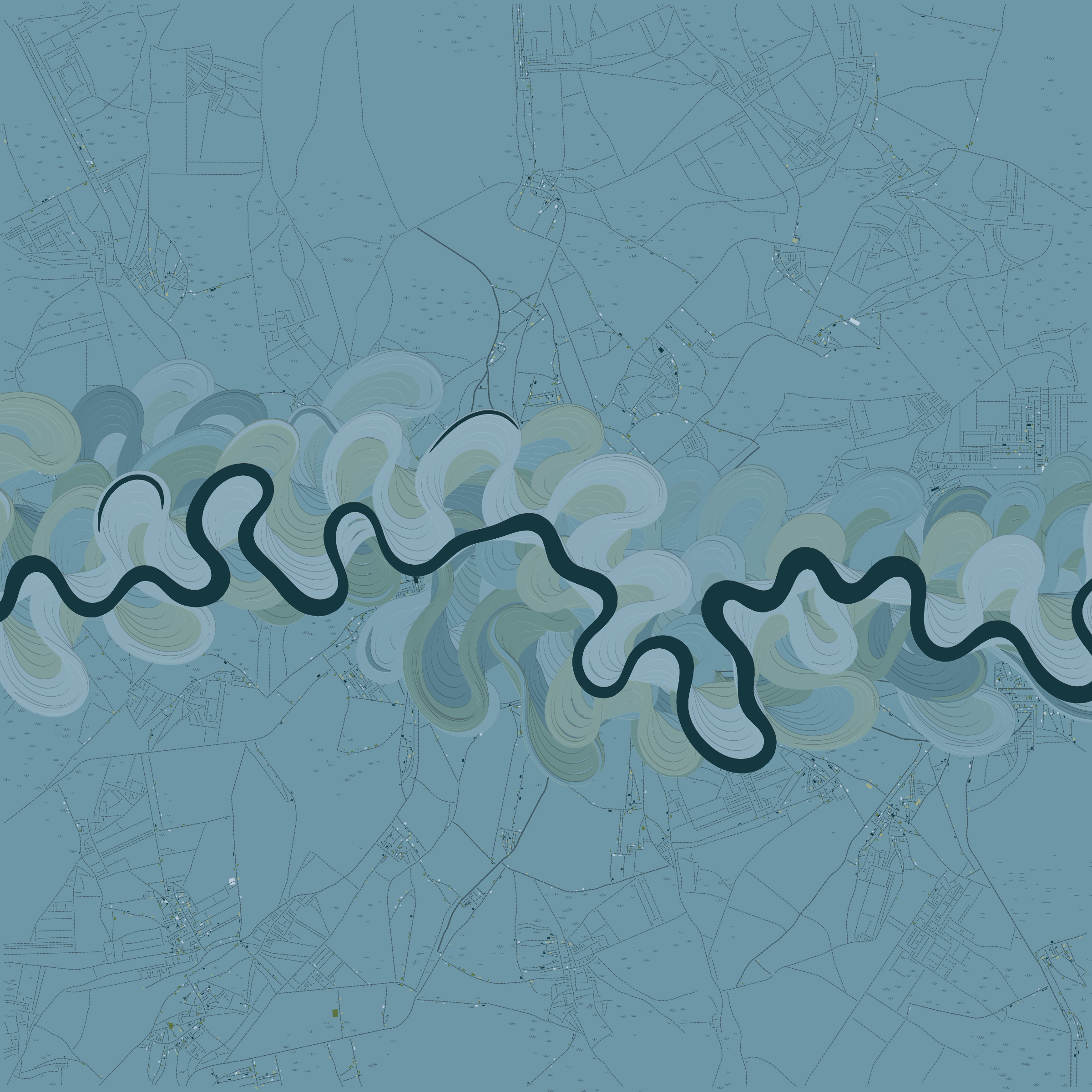 Ancient Courses is a generative experience that explores the aesthetics of meandering rivers and the settlements that form on their banks. The design is graphic and cartographic with bold color palettes rendered against map iconography and line sensibility. From the river banks, roads stretch across the landscape: sometimes a single access road, other times sprawling towns. The river meandering is simulated via a custom algorithm which closely models the real world process.