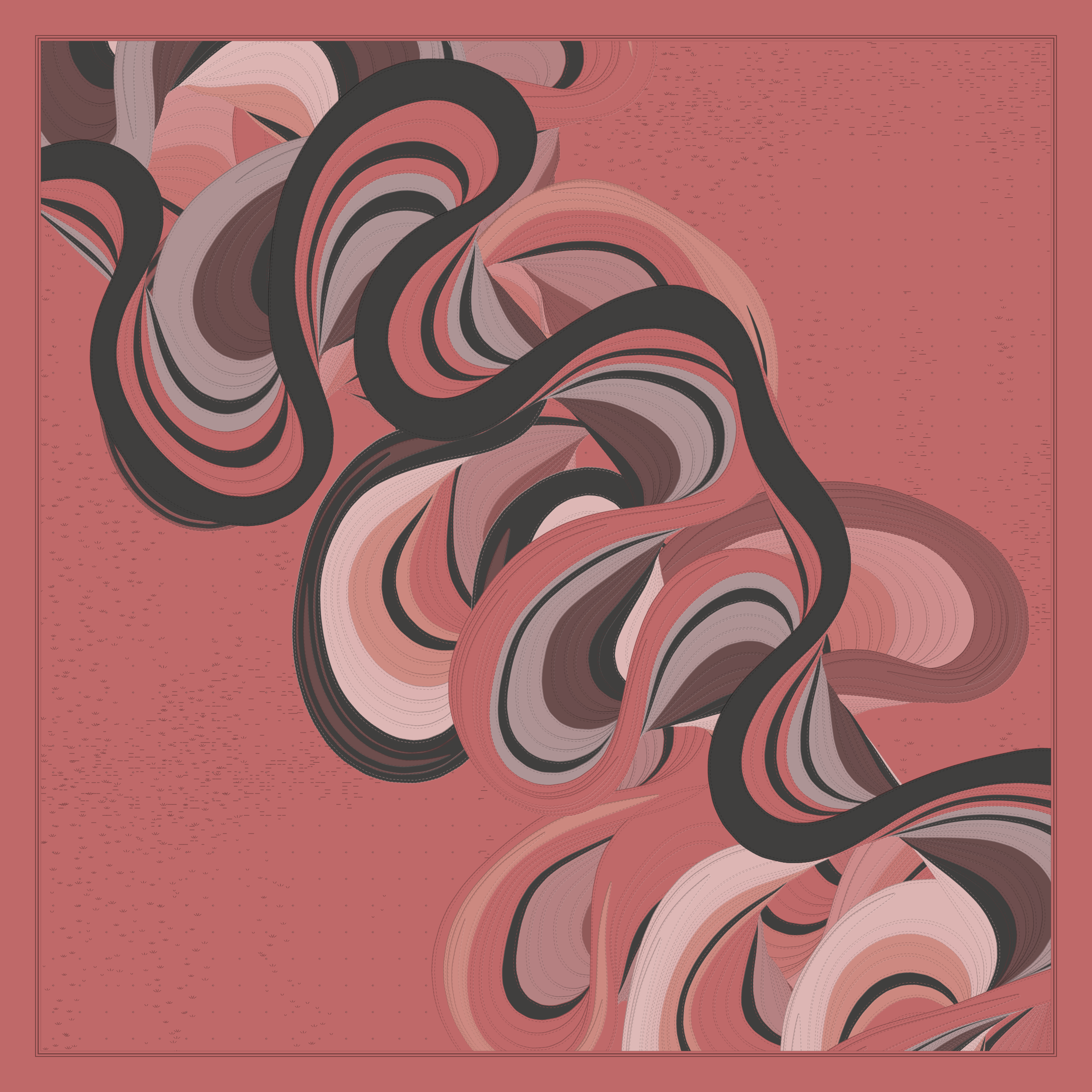 Ancient Courses is a generative experience that explores the aesthetics of meandering rivers and the settlements that form on their banks. The design is graphic and cartographic with bold color palettes rendered against map iconography and line sensibility. From the river banks, roads stretch across the landscape: sometimes a single access road, other times sprawling towns. The river meandering is simulated via a custom algorithm which closely models the real world process.