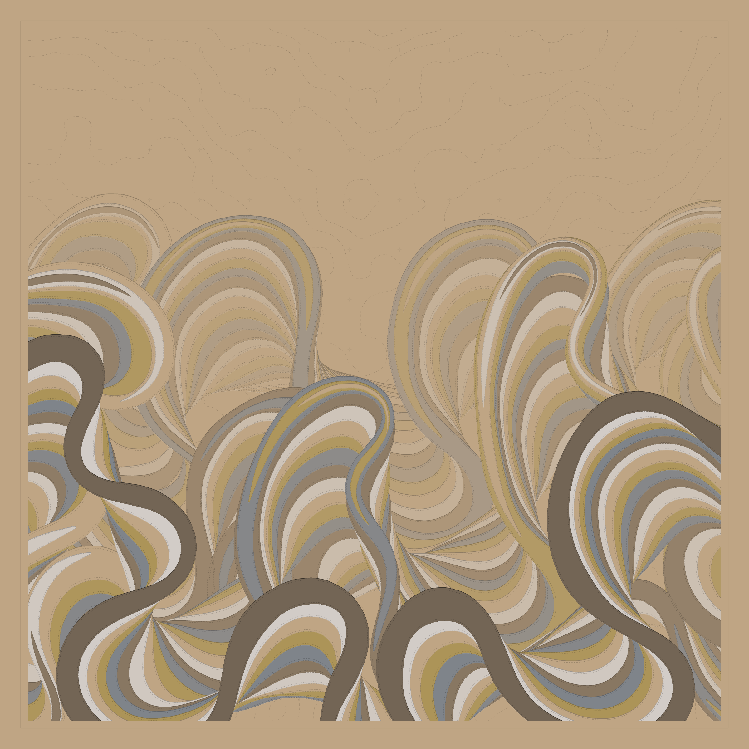 Ancient Courses is a generative experience that explores the aesthetics of meandering rivers and the settlements that form on their banks. The design is graphic and cartographic with bold color palettes rendered against map iconography and line sensibility. From the river banks, roads stretch across the landscape: sometimes a single access road, other times sprawling towns. The river meandering is simulated via a custom algorithm which closely models the real world process.