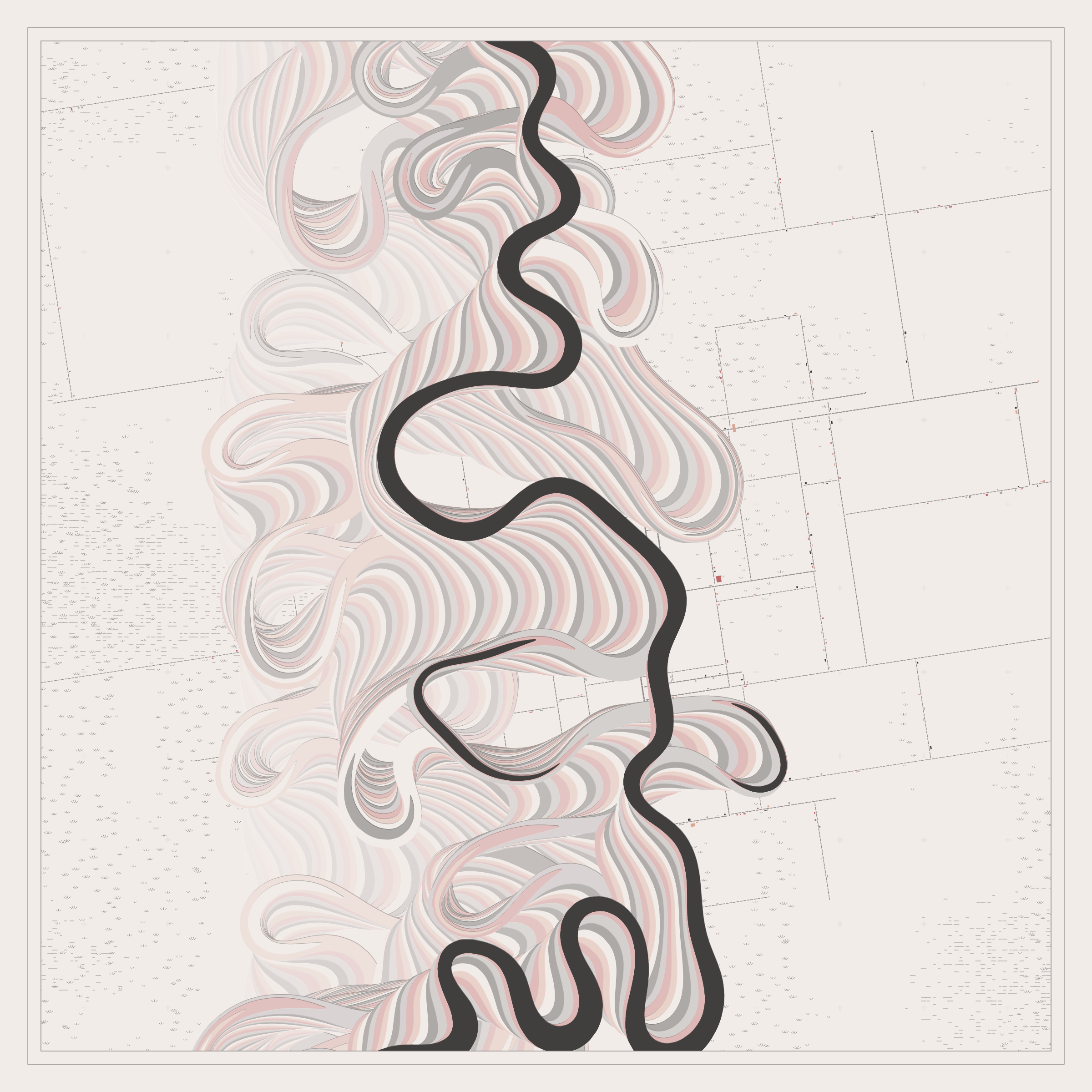 Ancient Courses is a generative experience that explores the aesthetics of meandering rivers and the settlements that form on their banks. The design is graphic and cartographic with bold color palettes rendered against map iconography and line sensibility. From the river banks, roads stretch across the landscape: sometimes a single access road, other times sprawling towns. The river meandering is simulated via a custom algorithm which closely models the real world process.