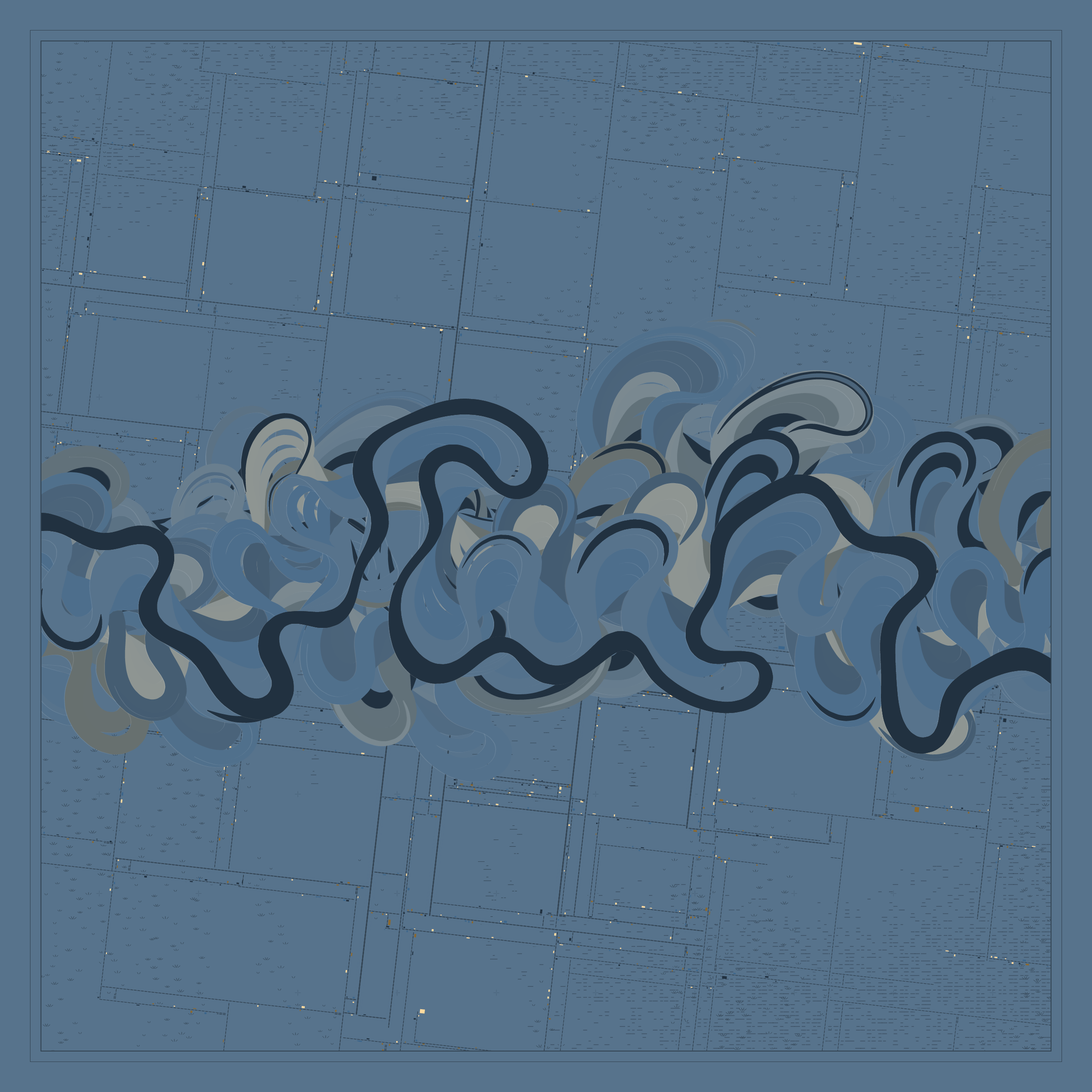 Ancient Courses is a generative experience that explores the aesthetics of meandering rivers and the settlements that form on their banks. The design is graphic and cartographic with bold color palettes rendered against map iconography and line sensibility. From the river banks, roads stretch across the landscape: sometimes a single access road, other times sprawling towns. The river meandering is simulated via a custom algorithm which closely models the real world process.