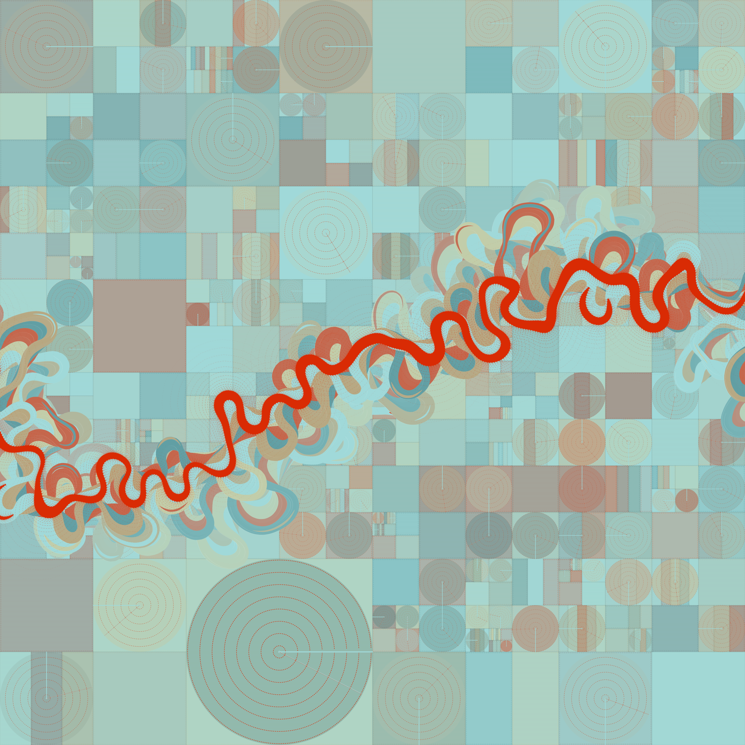 Ancient Courses is a generative experience that explores the aesthetics of meandering rivers and the settlements that form on their banks. The design is graphic and cartographic with bold color palettes rendered against map iconography and line sensibility. From the river banks, roads stretch across the landscape: sometimes a single access road, other times sprawling towns. The river meandering is simulated via a custom algorithm which closely models the real world process.