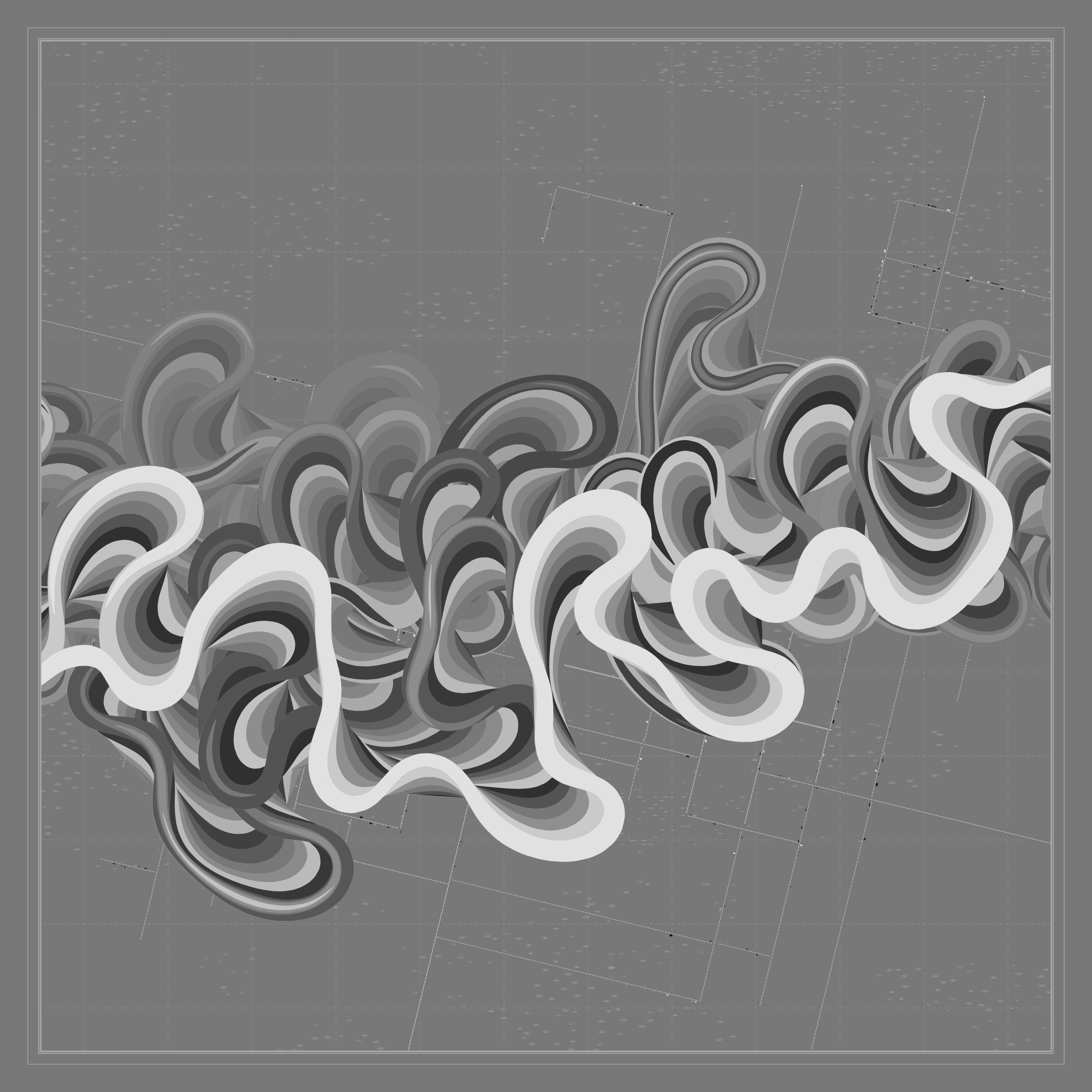 Ancient Courses is a generative experience that explores the aesthetics of meandering rivers and the settlements that form on their banks. The design is graphic and cartographic with bold color palettes rendered against map iconography and line sensibility. From the river banks, roads stretch across the landscape: sometimes a single access road, other times sprawling towns. The river meandering is simulated via a custom algorithm which closely models the real world process.