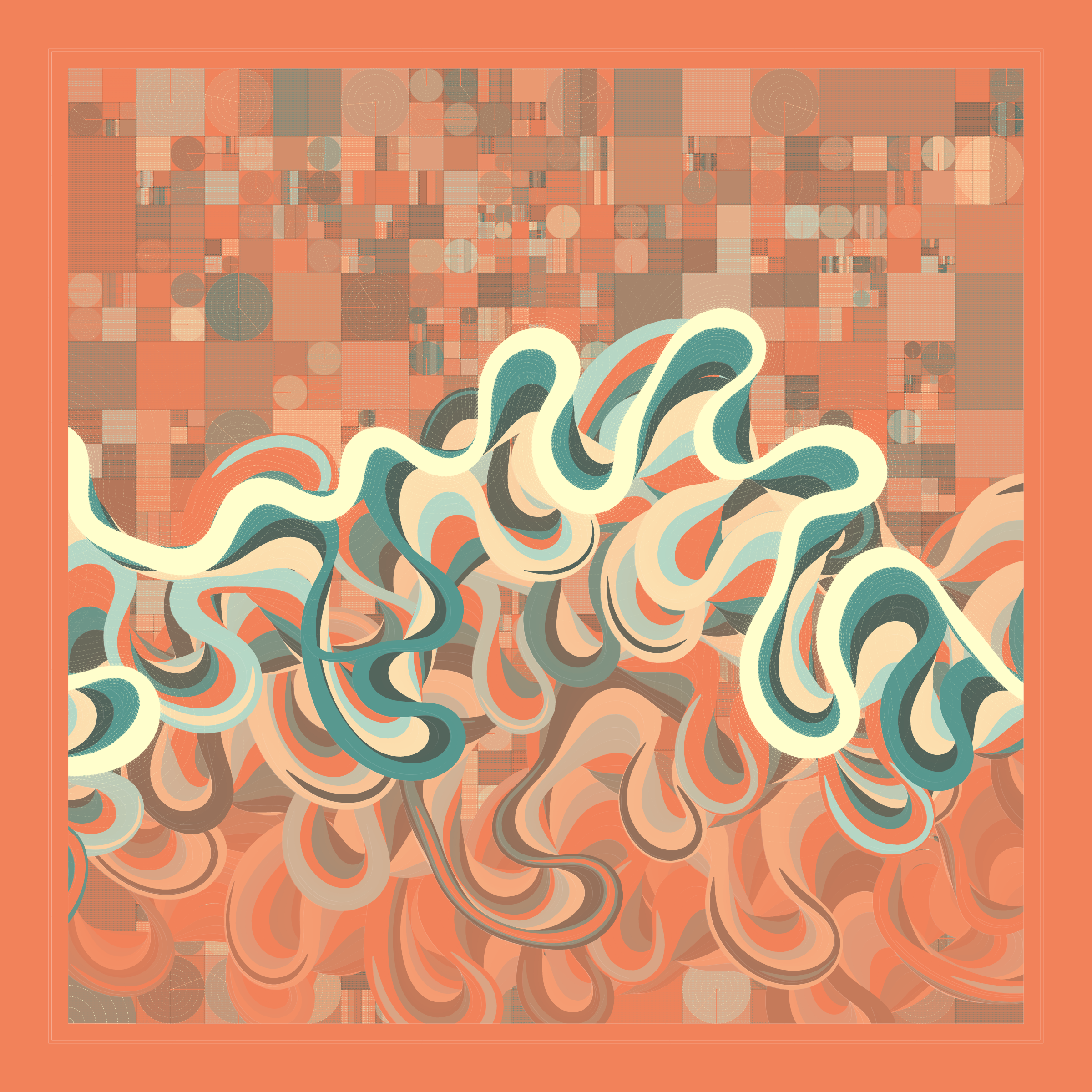 Ancient Courses is a generative experience that explores the aesthetics of meandering rivers and the settlements that form on their banks. The design is graphic and cartographic with bold color palettes rendered against map iconography and line sensibility. From the river banks, roads stretch across the landscape: sometimes a single access road, other times sprawling towns. The river meandering is simulated via a custom algorithm which closely models the real world process.