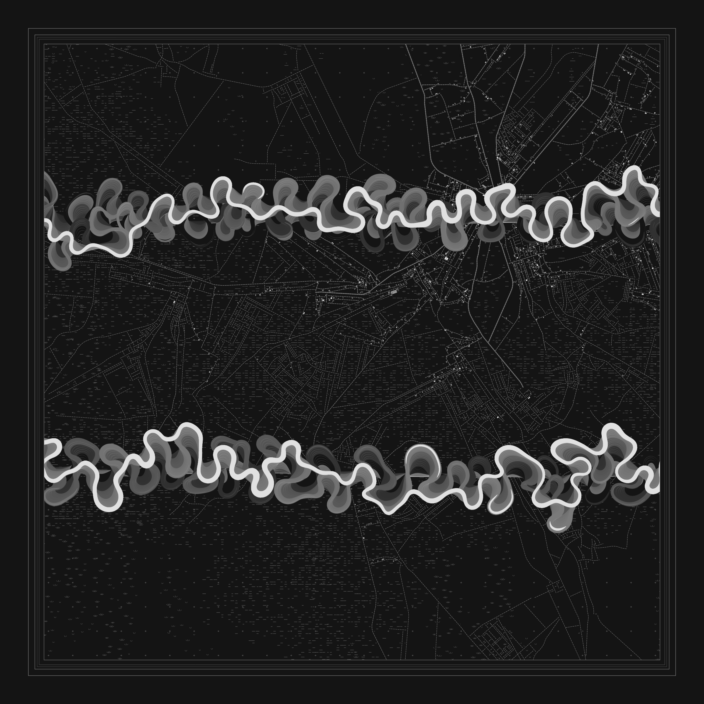 Ancient Courses is a generative experience that explores the aesthetics of meandering rivers and the settlements that form on their banks. The design is graphic and cartographic with bold color palettes rendered against map iconography and line sensibility. From the river banks, roads stretch across the landscape: sometimes a single access road, other times sprawling towns. The river meandering is simulated via a custom algorithm which closely models the real world process.