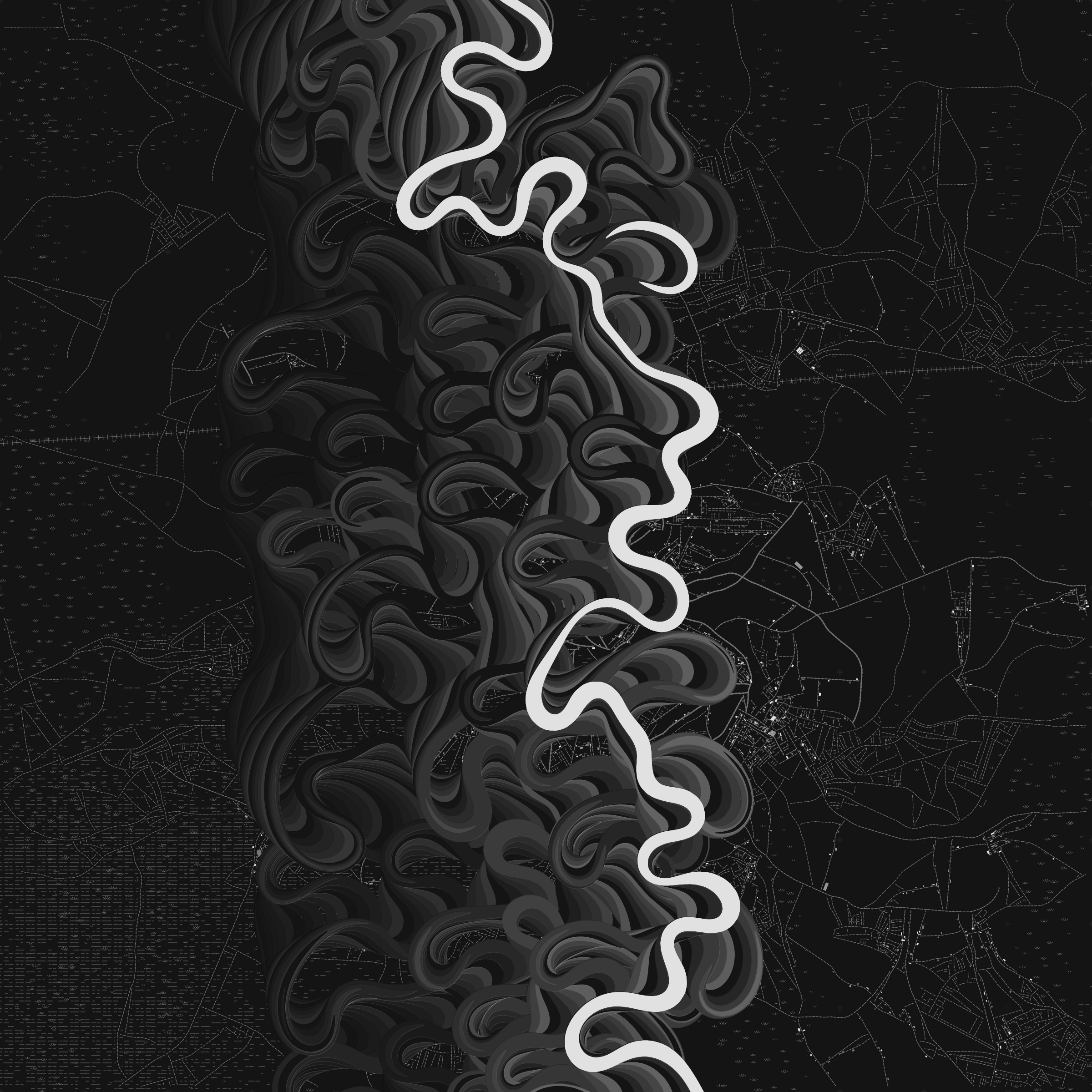 Ancient Courses is a generative experience that explores the aesthetics of meandering rivers and the settlements that form on their banks. The design is graphic and cartographic with bold color palettes rendered against map iconography and line sensibility. From the river banks, roads stretch across the landscape: sometimes a single access road, other times sprawling towns. The river meandering is simulated via a custom algorithm which closely models the real world process.
