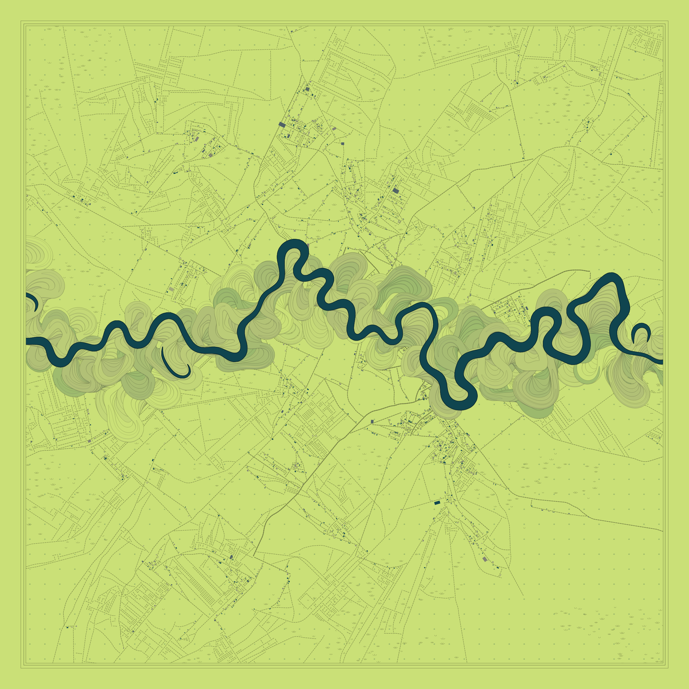 Ancient Courses is a generative experience that explores the aesthetics of meandering rivers and the settlements that form on their banks. The design is graphic and cartographic with bold color palettes rendered against map iconography and line sensibility. From the river banks, roads stretch across the landscape: sometimes a single access road, other times sprawling towns. The river meandering is simulated via a custom algorithm which closely models the real world process.
