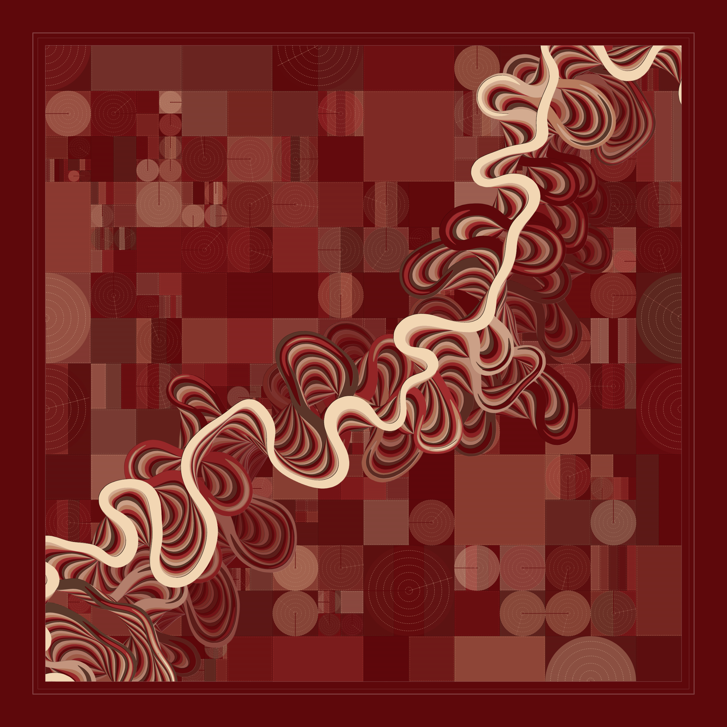 Ancient Courses is a generative experience that explores the aesthetics of meandering rivers and the settlements that form on their banks. The design is graphic and cartographic with bold color palettes rendered against map iconography and line sensibility. From the river banks, roads stretch across the landscape: sometimes a single access road, other times sprawling towns. The river meandering is simulated via a custom algorithm which closely models the real world process.