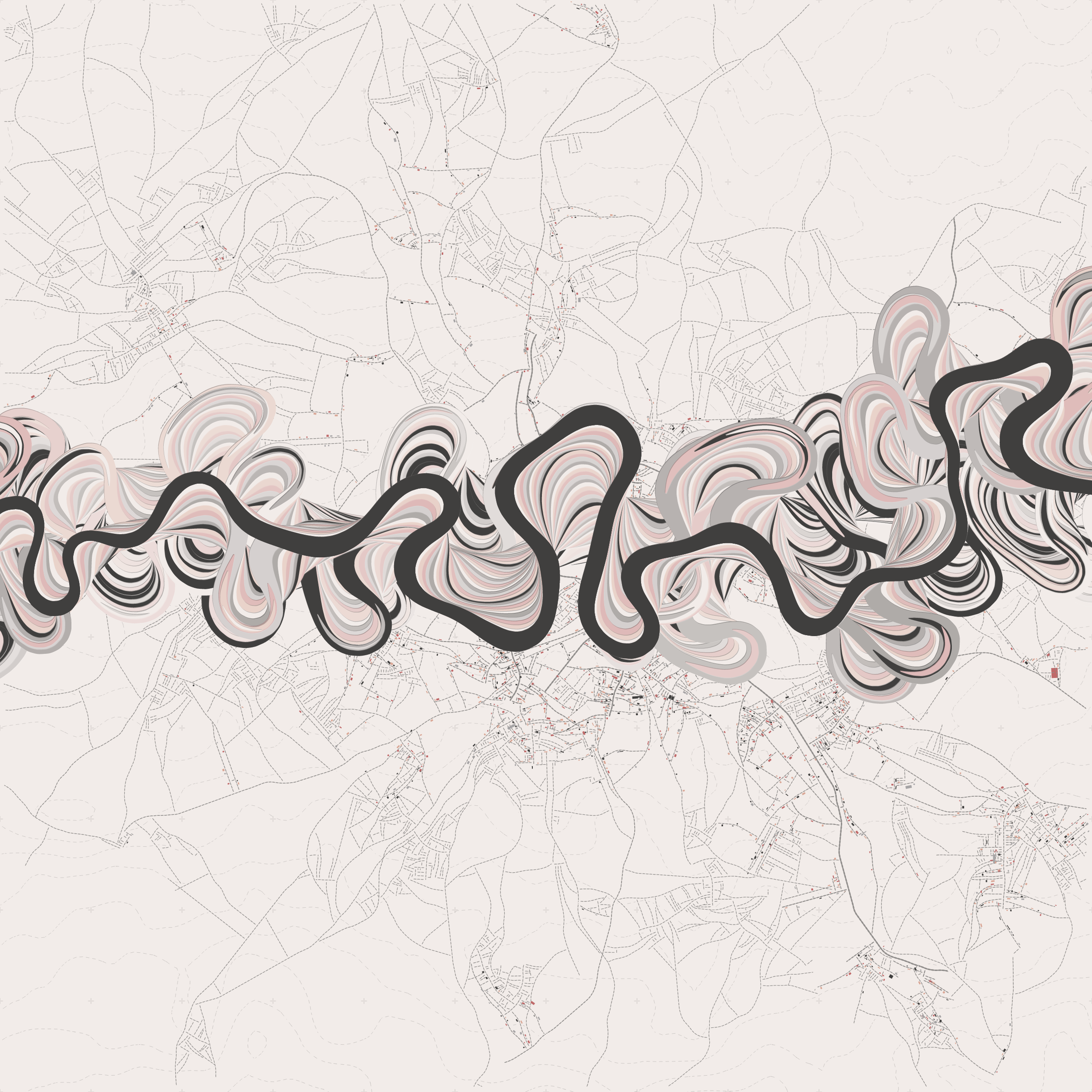 Ancient Courses is a generative experience that explores the aesthetics of meandering rivers and the settlements that form on their banks. The design is graphic and cartographic with bold color palettes rendered against map iconography and line sensibility. From the river banks, roads stretch across the landscape: sometimes a single access road, other times sprawling towns. The river meandering is simulated via a custom algorithm which closely models the real world process.