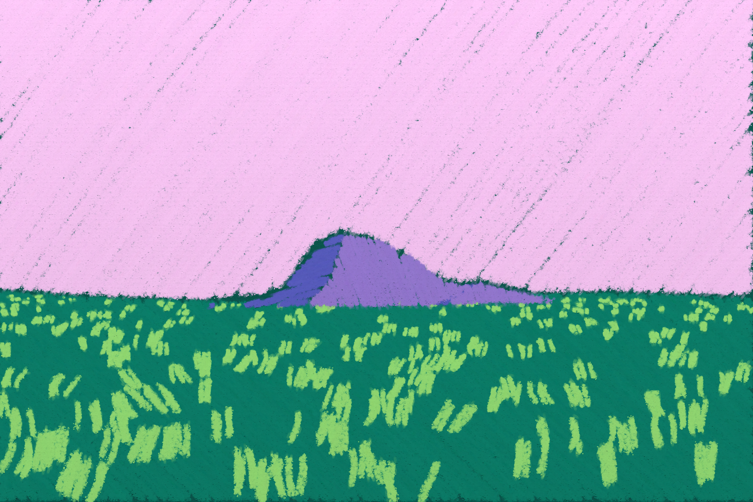 *Arcadia* is a homage to the fridge-worthy landscape art of our youth. Childhood techniques of creating art are re-imagined by the scribbles of a nostalgic, computer-assisted mind.