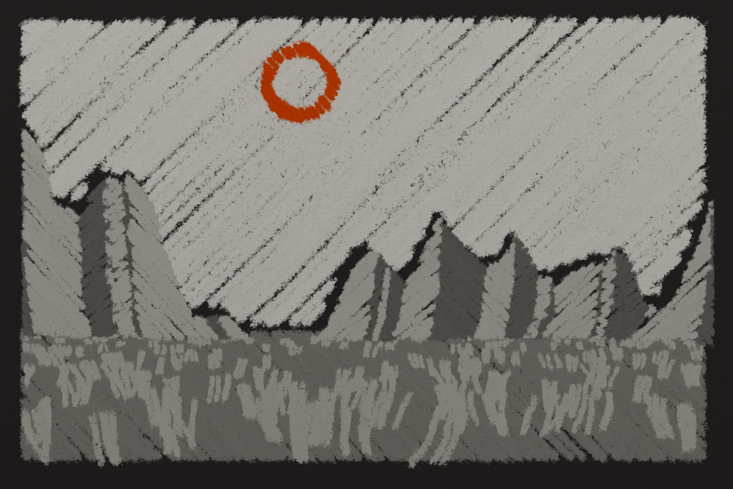 *Arcadia* is a homage to the fridge-worthy landscape art of our youth. Childhood techniques of creating art are re-imagined by the scribbles of a nostalgic, computer-assisted mind.