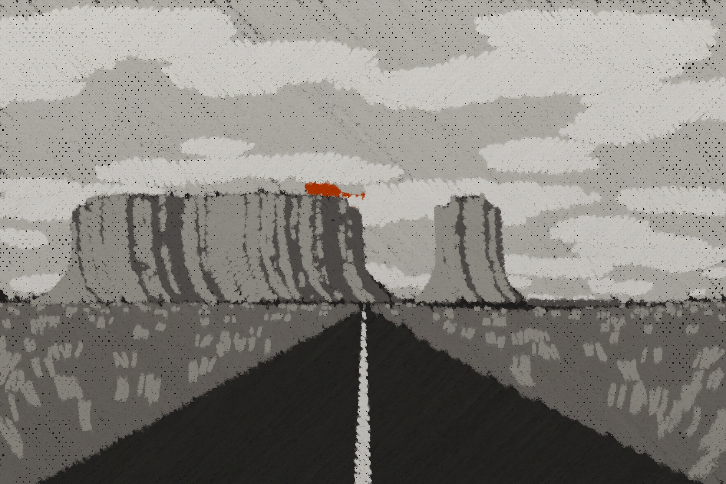 *Arcadia* is a homage to the fridge-worthy landscape art of our youth. Childhood techniques of creating art are re-imagined by the scribbles of a nostalgic, computer-assisted mind.