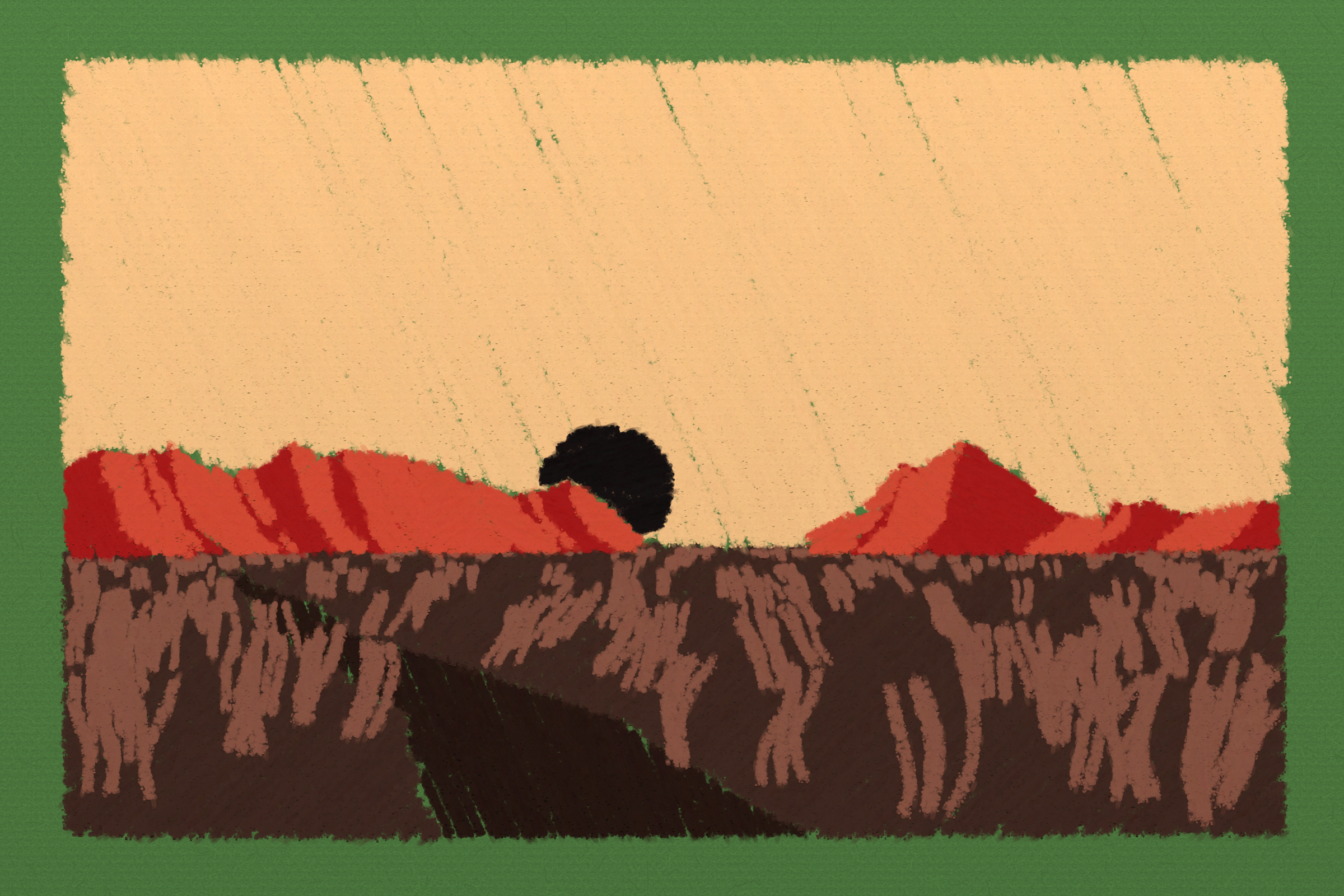 *Arcadia* is a homage to the fridge-worthy landscape art of our youth. Childhood techniques of creating art are re-imagined by the scribbles of a nostalgic, computer-assisted mind.