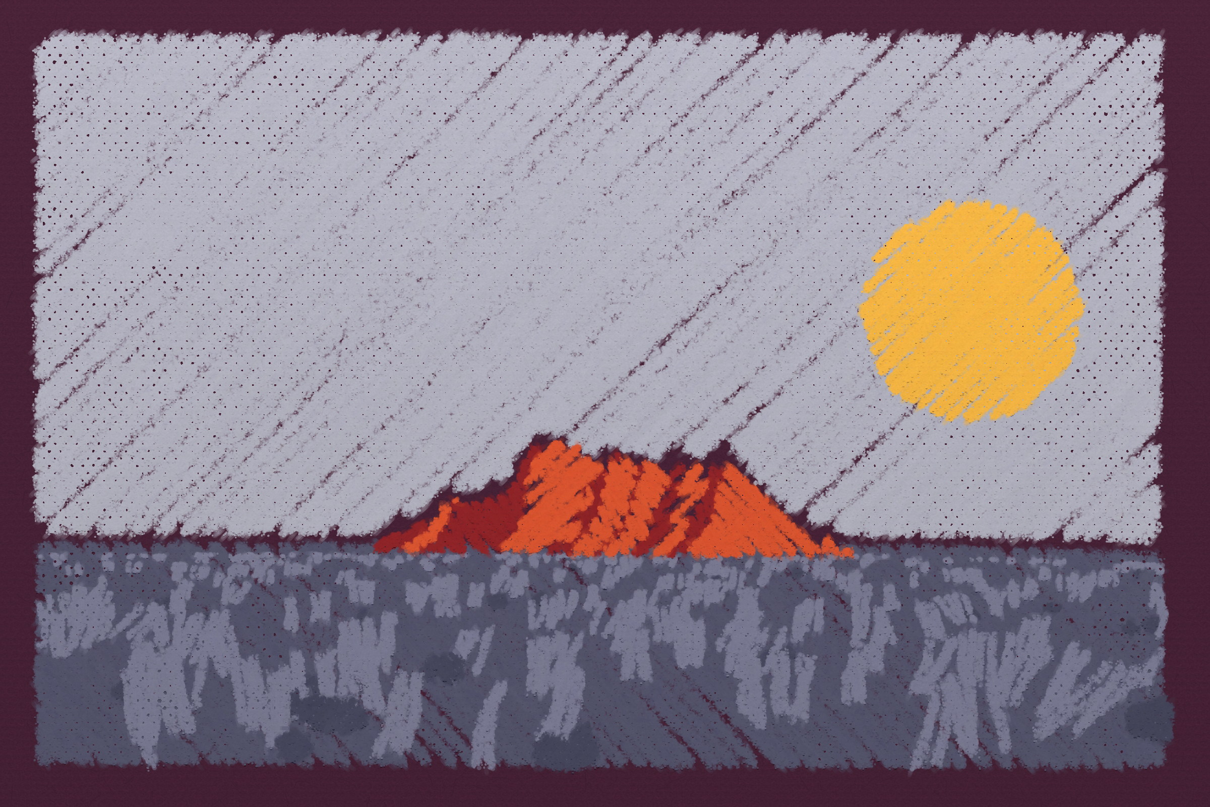 *Arcadia* is a homage to the fridge-worthy landscape art of our youth. Childhood techniques of creating art are re-imagined by the scribbles of a nostalgic, computer-assisted mind.