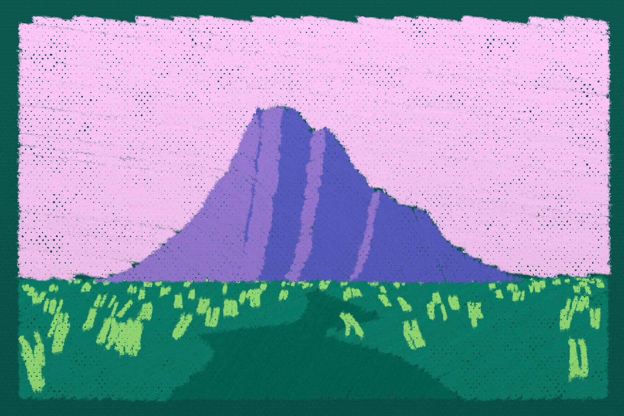 *Arcadia* is a homage to the fridge-worthy landscape art of our youth. Childhood techniques of creating art are re-imagined by the scribbles of a nostalgic, computer-assisted mind.
