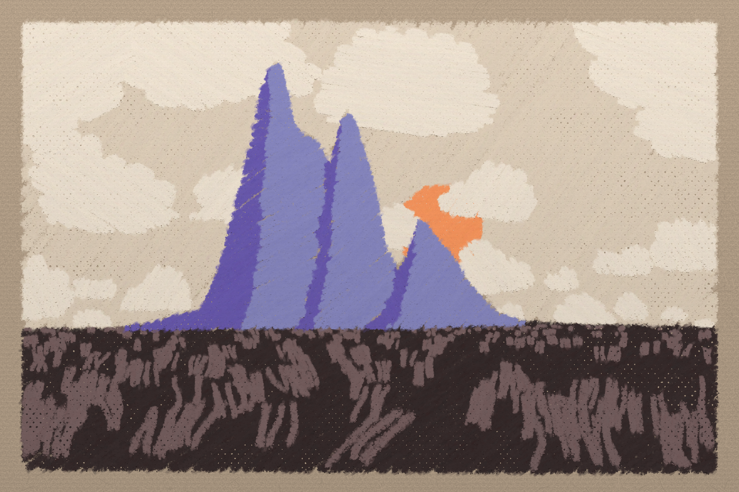 *Arcadia* is a homage to the fridge-worthy landscape art of our youth. Childhood techniques of creating art are re-imagined by the scribbles of a nostalgic, computer-assisted mind.