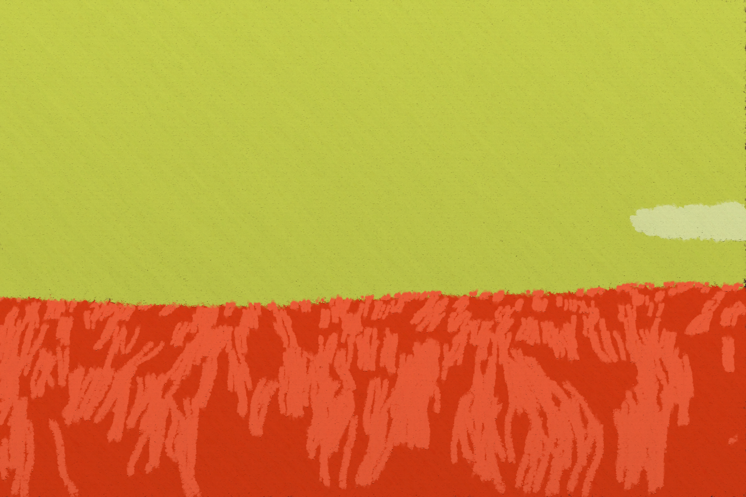 *Arcadia* is a homage to the fridge-worthy landscape art of our youth. Childhood techniques of creating art are re-imagined by the scribbles of a nostalgic, computer-assisted mind.