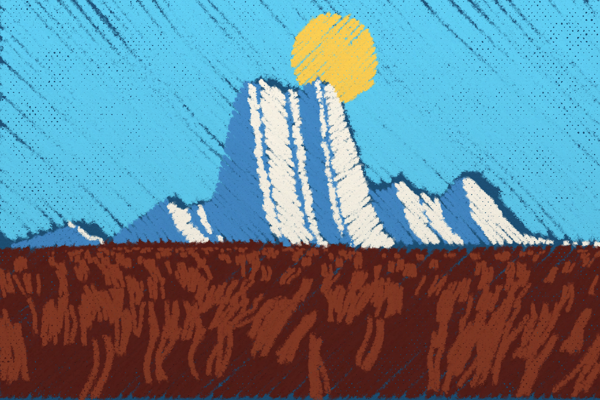*Arcadia* is a homage to the fridge-worthy landscape art of our youth. Childhood techniques of creating art are re-imagined by the scribbles of a nostalgic, computer-assisted mind.