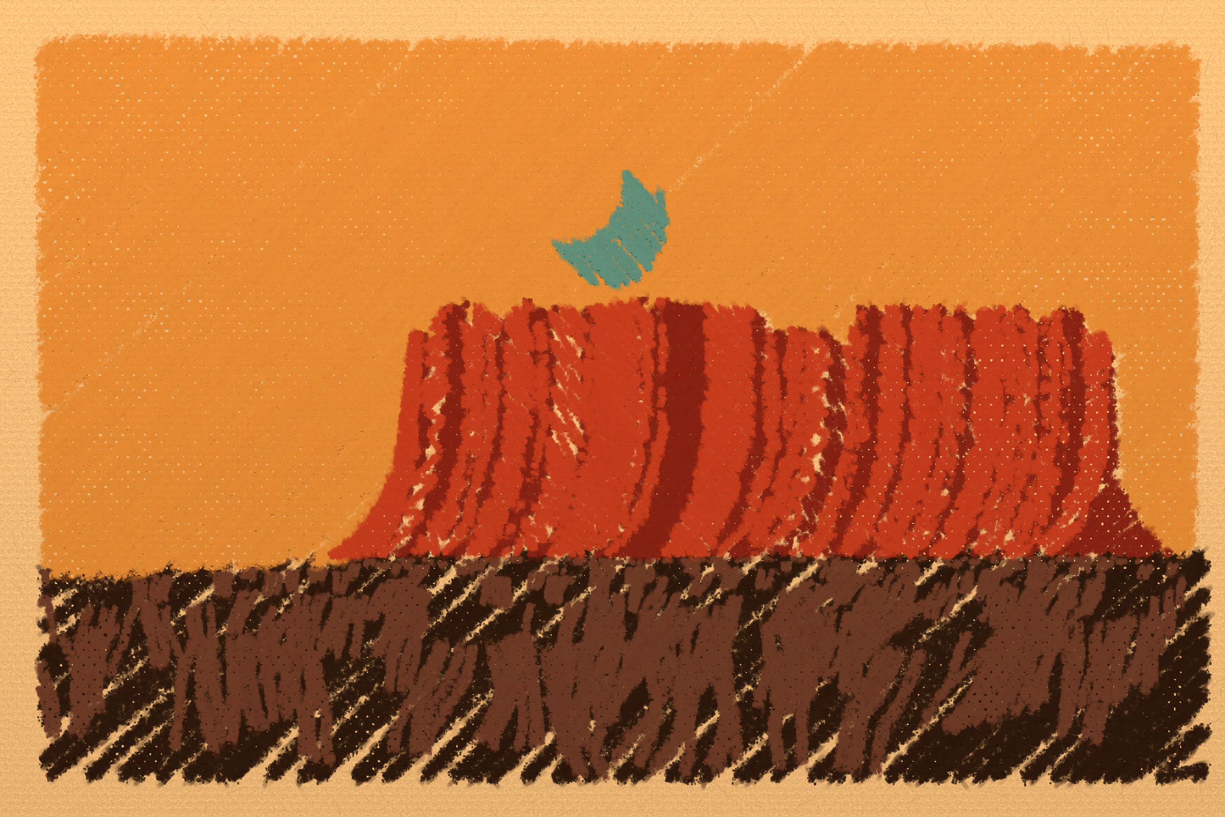 *Arcadia* is a homage to the fridge-worthy landscape art of our youth. Childhood techniques of creating art are re-imagined by the scribbles of a nostalgic, computer-assisted mind.