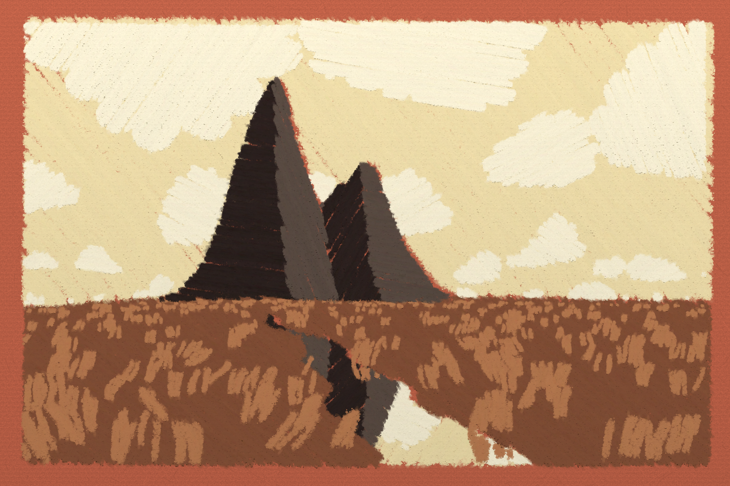 *Arcadia* is a homage to the fridge-worthy landscape art of our youth. Childhood techniques of creating art are re-imagined by the scribbles of a nostalgic, computer-assisted mind.
