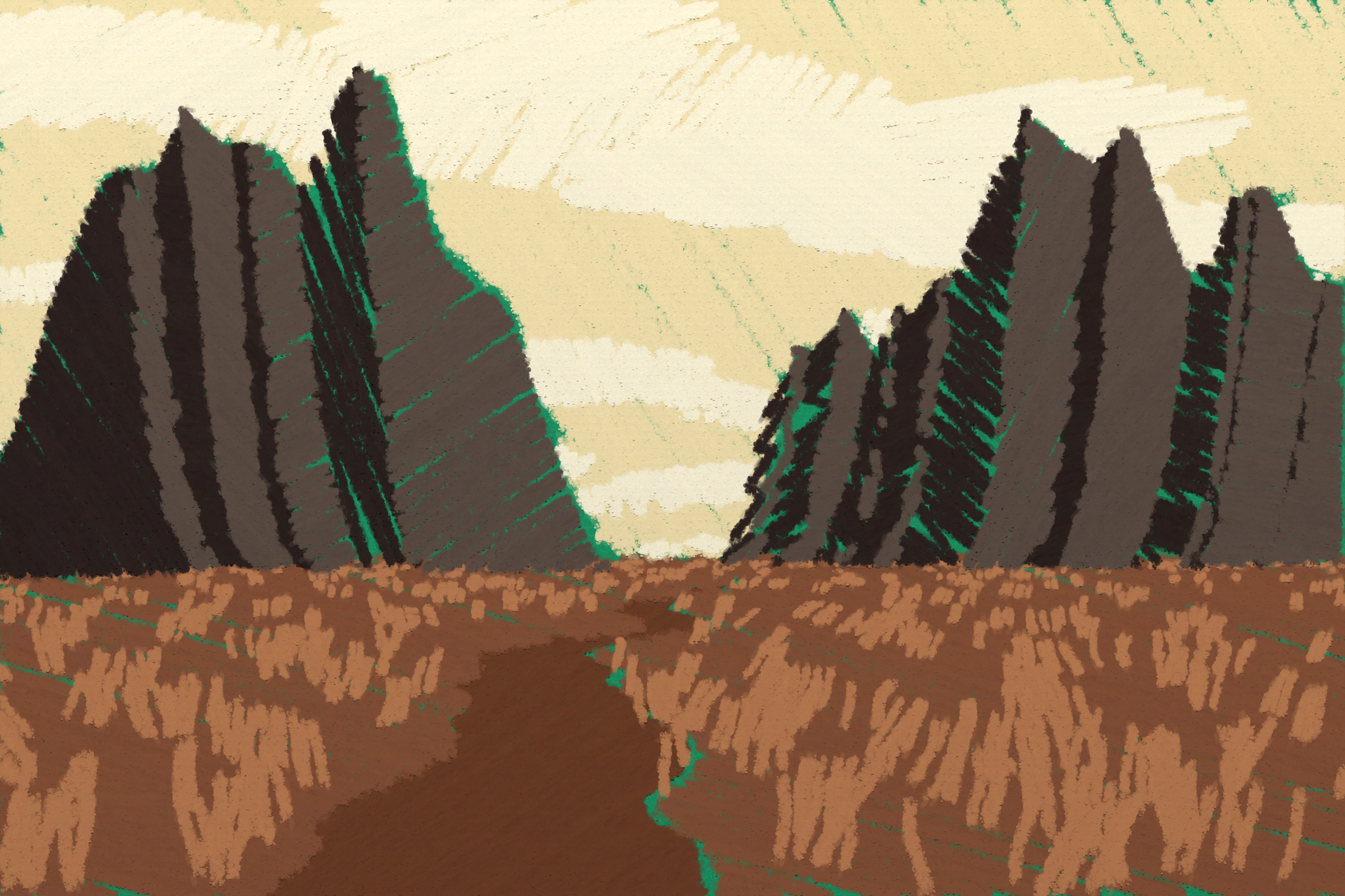 *Arcadia* is a homage to the fridge-worthy landscape art of our youth. Childhood techniques of creating art are re-imagined by the scribbles of a nostalgic, computer-assisted mind.