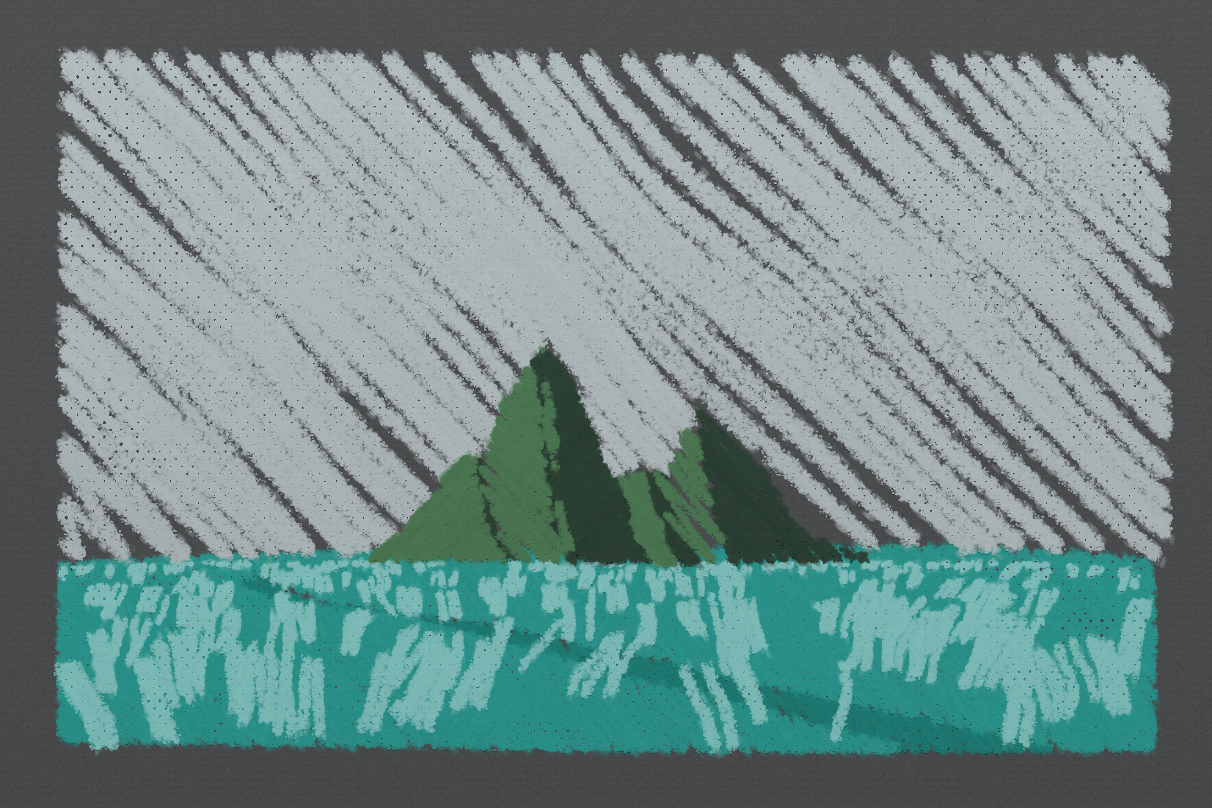 *Arcadia* is a homage to the fridge-worthy landscape art of our youth. Childhood techniques of creating art are re-imagined by the scribbles of a nostalgic, computer-assisted mind.
