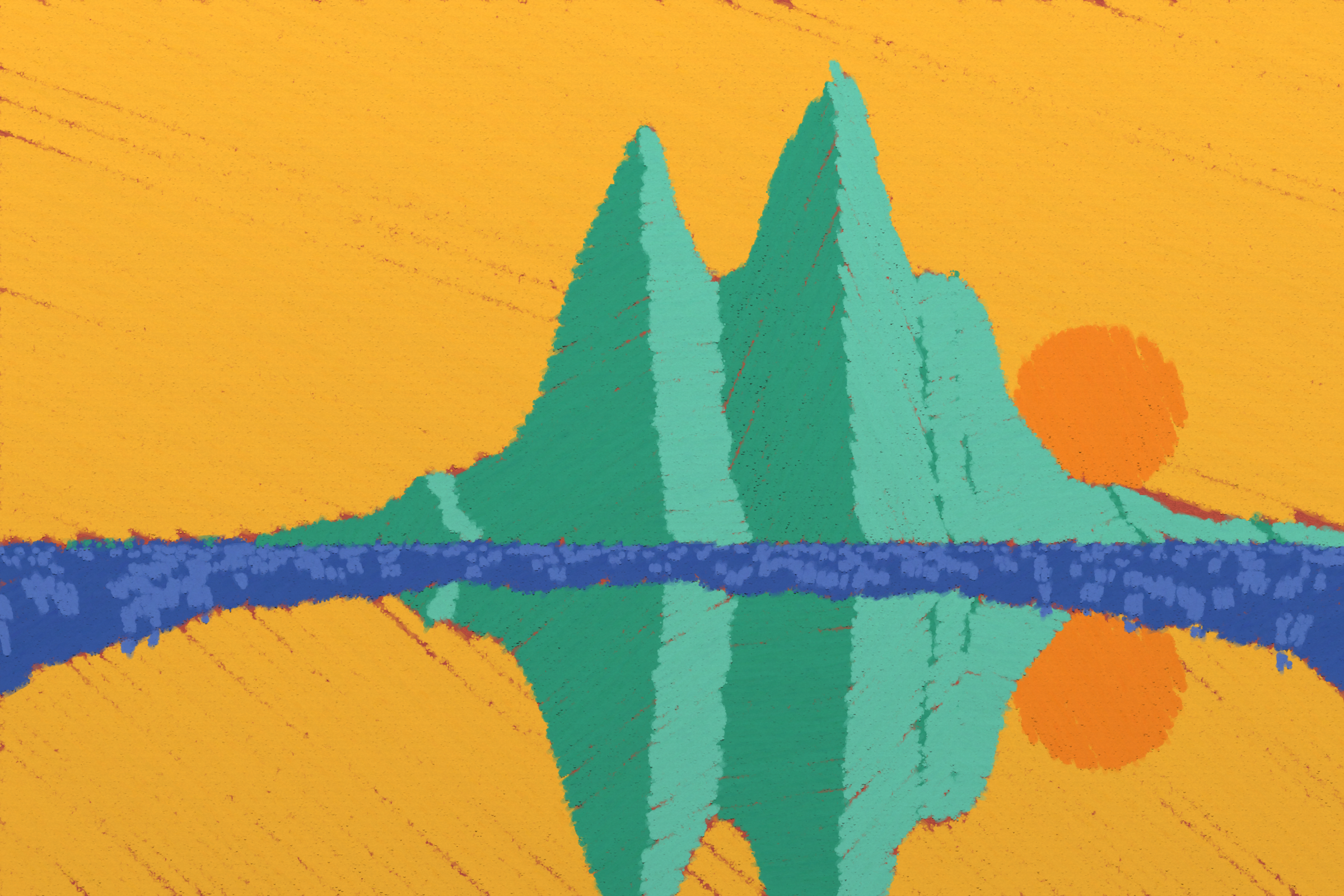 *Arcadia* is a homage to the fridge-worthy landscape art of our youth. Childhood techniques of creating art are re-imagined by the scribbles of a nostalgic, computer-assisted mind.