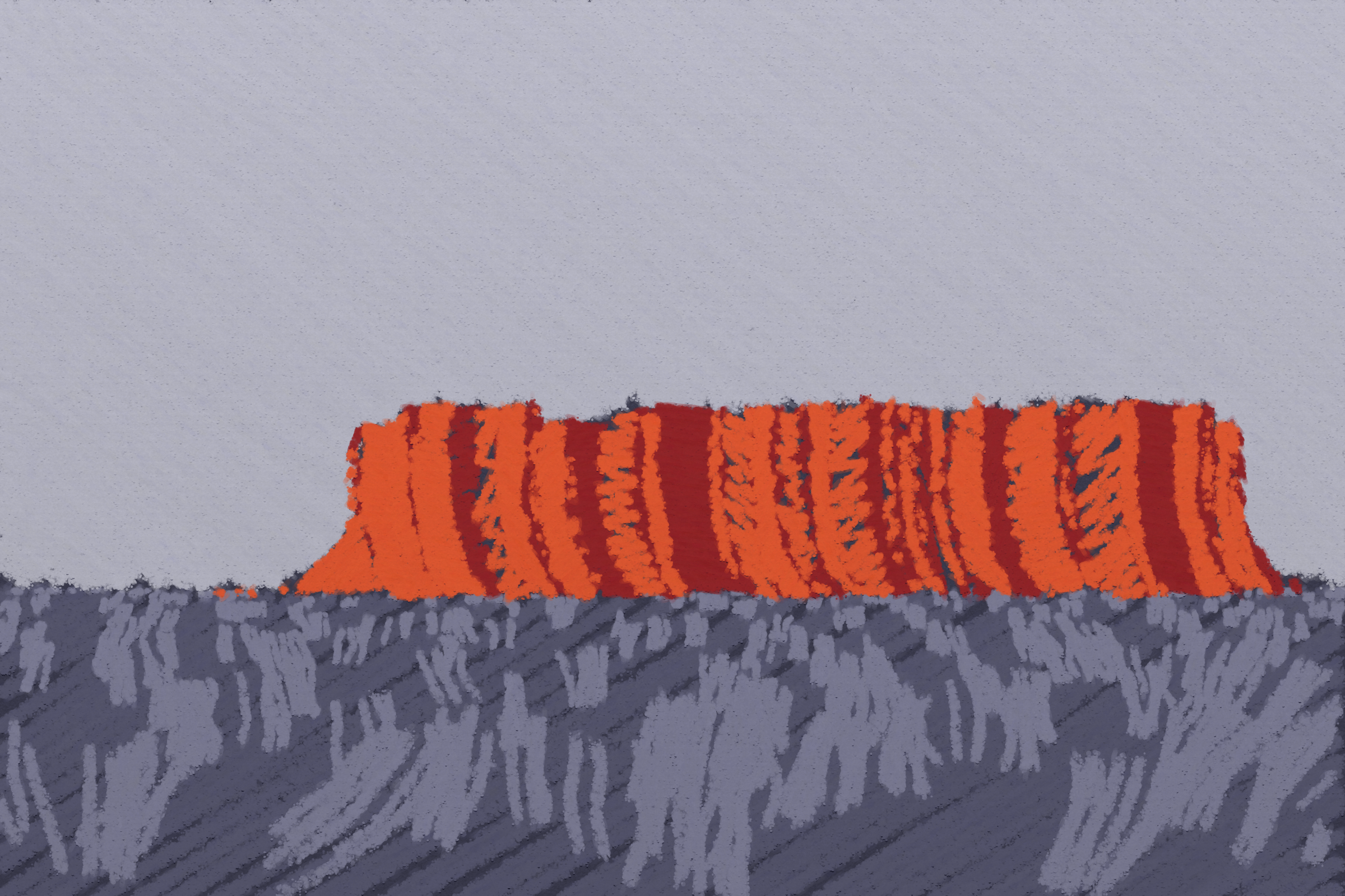 *Arcadia* is a homage to the fridge-worthy landscape art of our youth. Childhood techniques of creating art are re-imagined by the scribbles of a nostalgic, computer-assisted mind.