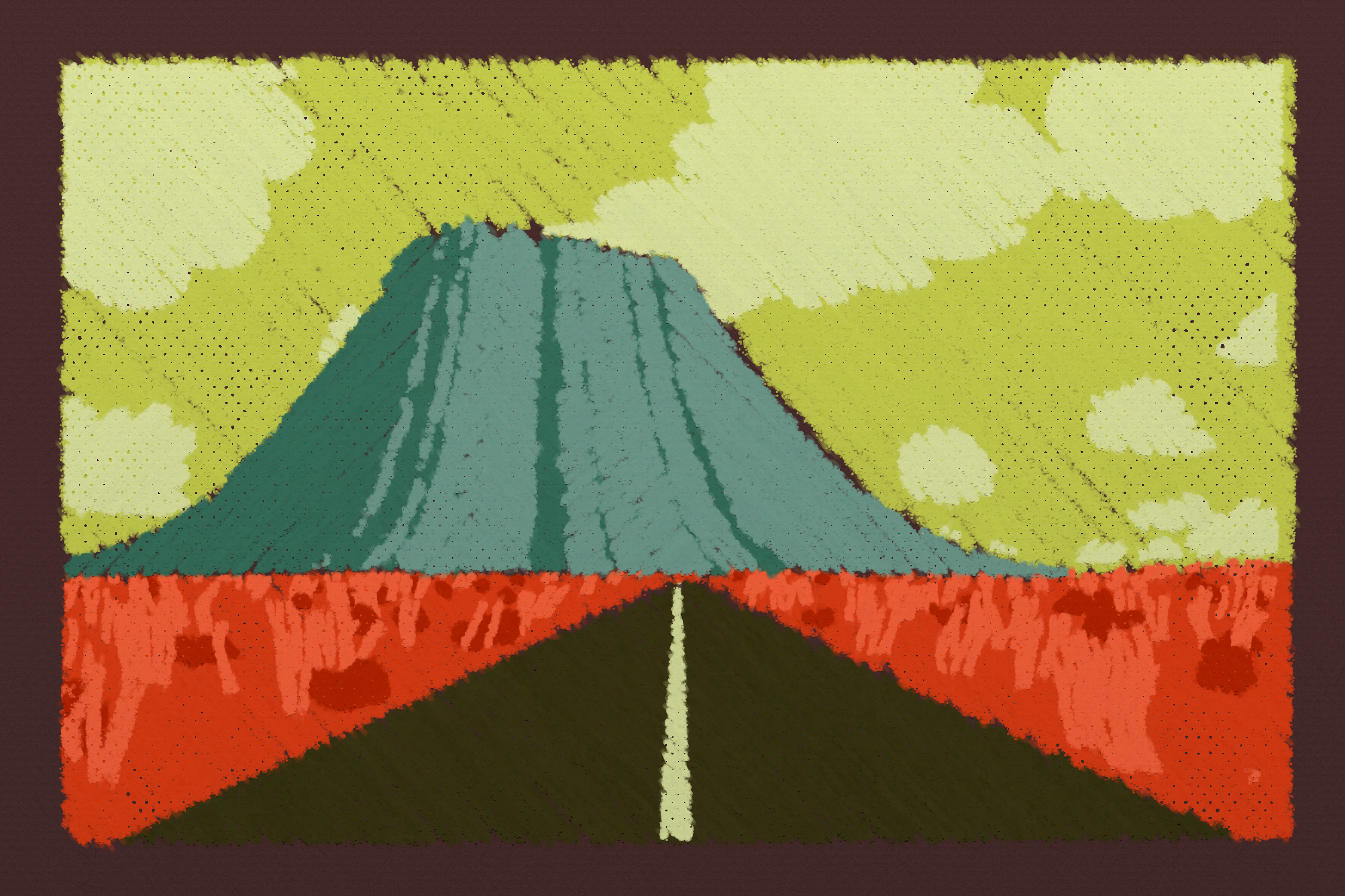 *Arcadia* is a homage to the fridge-worthy landscape art of our youth. Childhood techniques of creating art are re-imagined by the scribbles of a nostalgic, computer-assisted mind.