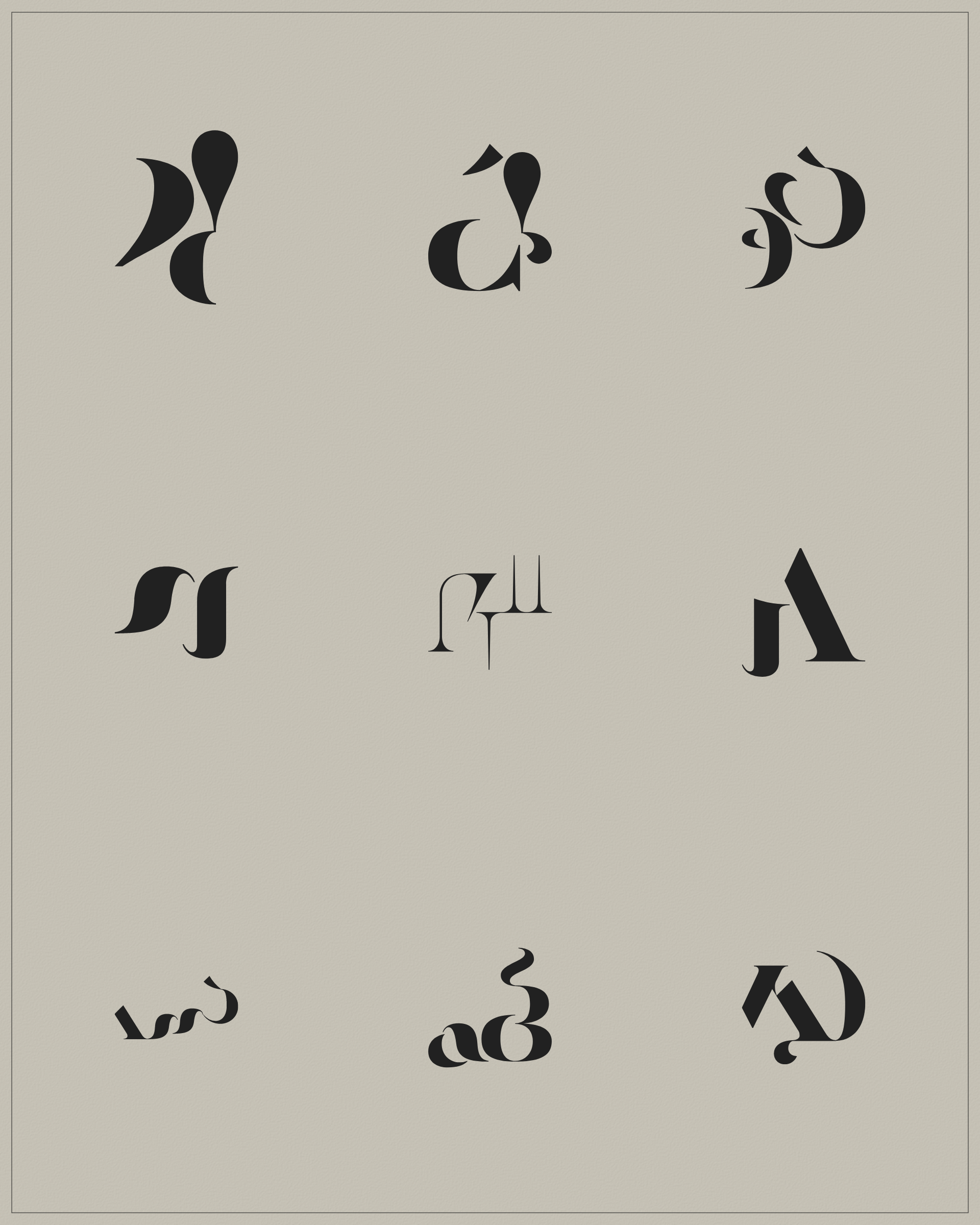 Abstract typographic elements slide together to create new characters. In some compositions, a single character is featured. In others, characters string together to form words and sentences, which the algorithm shapes into often-familiar layouts. // The type designer Gerard Unger said “it is almost impossible to look and read at the same time”. Asemica invites you to look without the burden of legibility. // Created by Emily Edelman, Dima Ofman, and Andrew Badr. Command-S to download a vector file. // Dutch Auction Tiers: 10 / 7 / 5 / 4 / 3.4 / 2.8 / 2.4 / 2 / 1.75 / 1.5 / 1.25 / 1 / 0.75 / 0.5 / 0.25 / 0.1