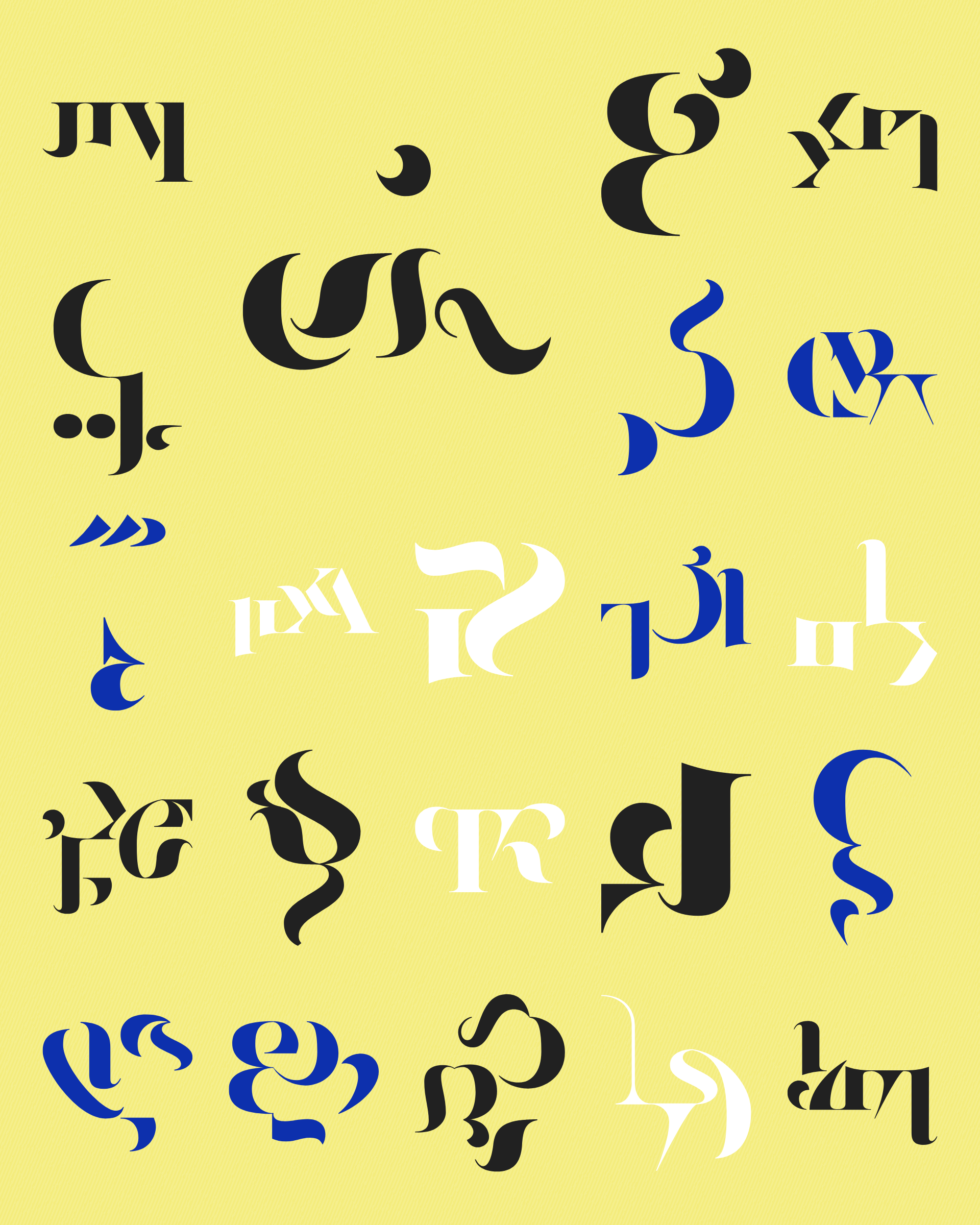 Abstract typographic elements slide together to create new characters. In some compositions, a single character is featured. In others, characters string together to form words and sentences, which the algorithm shapes into often-familiar layouts. // The type designer Gerard Unger said “it is almost impossible to look and read at the same time”. Asemica invites you to look without the burden of legibility. // Created by Emily Edelman, Dima Ofman, and Andrew Badr. Command-S to download a vector file. // Dutch Auction Tiers: 10 / 7 / 5 / 4 / 3.4 / 2.8 / 2.4 / 2 / 1.75 / 1.5 / 1.25 / 1 / 0.75 / 0.5 / 0.25 / 0.1