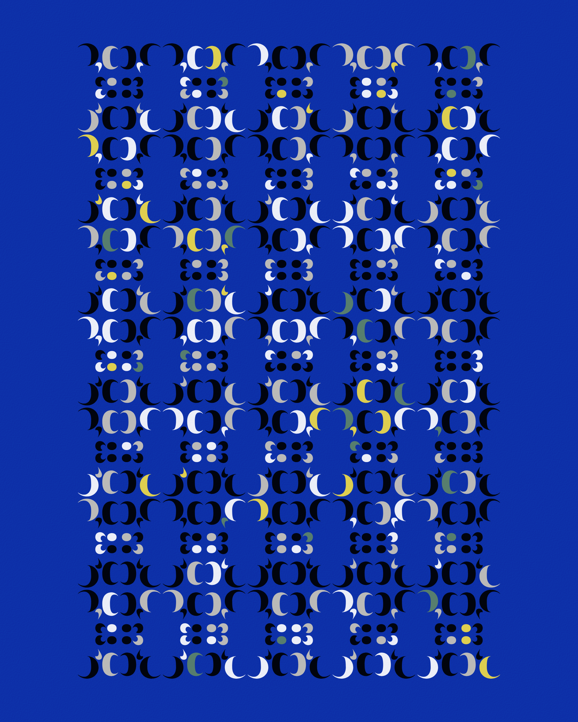 Abstract typographic elements slide together to create new characters. In some compositions, a single character is featured. In others, characters string together to form words and sentences, which the algorithm shapes into often-familiar layouts. // The type designer Gerard Unger said “it is almost impossible to look and read at the same time”. Asemica invites you to look without the burden of legibility. // Created by Emily Edelman, Dima Ofman, and Andrew Badr. Command-S to download a vector file. // Dutch Auction Tiers: 10 / 7 / 5 / 4 / 3.4 / 2.8 / 2.4 / 2 / 1.75 / 1.5 / 1.25 / 1 / 0.75 / 0.5 / 0.25 / 0.1