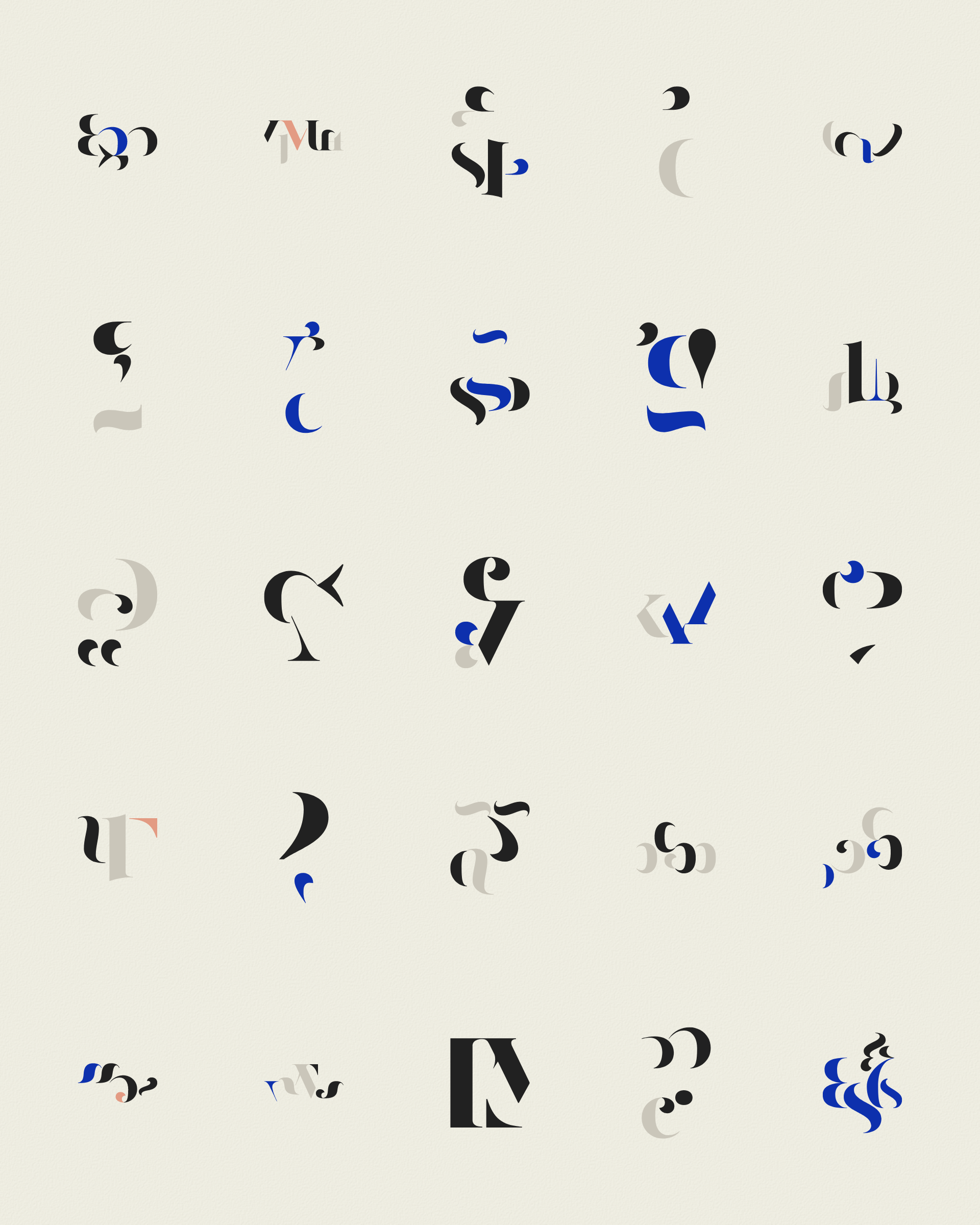Abstract typographic elements slide together to create new characters. In some compositions, a single character is featured. In others, characters string together to form words and sentences, which the algorithm shapes into often-familiar layouts. // The type designer Gerard Unger said “it is almost impossible to look and read at the same time”. Asemica invites you to look without the burden of legibility. // Created by Emily Edelman, Dima Ofman, and Andrew Badr. Command-S to download a vector file. // Dutch Auction Tiers: 10 / 7 / 5 / 4 / 3.4 / 2.8 / 2.4 / 2 / 1.75 / 1.5 / 1.25 / 1 / 0.75 / 0.5 / 0.25 / 0.1