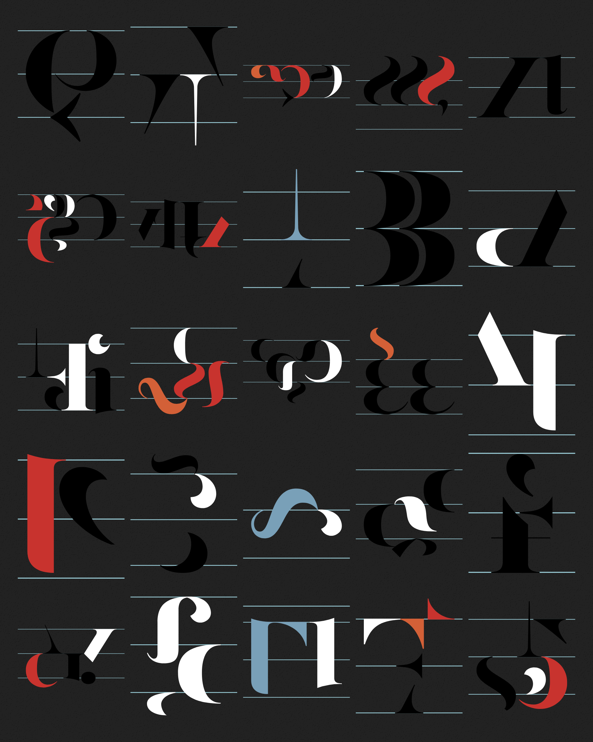 Abstract typographic elements slide together to create new characters. In some compositions, a single character is featured. In others, characters string together to form words and sentences, which the algorithm shapes into often-familiar layouts. // The type designer Gerard Unger said “it is almost impossible to look and read at the same time”. Asemica invites you to look without the burden of legibility. // Created by Emily Edelman, Dima Ofman, and Andrew Badr. Command-S to download a vector file. // Dutch Auction Tiers: 10 / 7 / 5 / 4 / 3.4 / 2.8 / 2.4 / 2 / 1.75 / 1.5 / 1.25 / 1 / 0.75 / 0.5 / 0.25 / 0.1