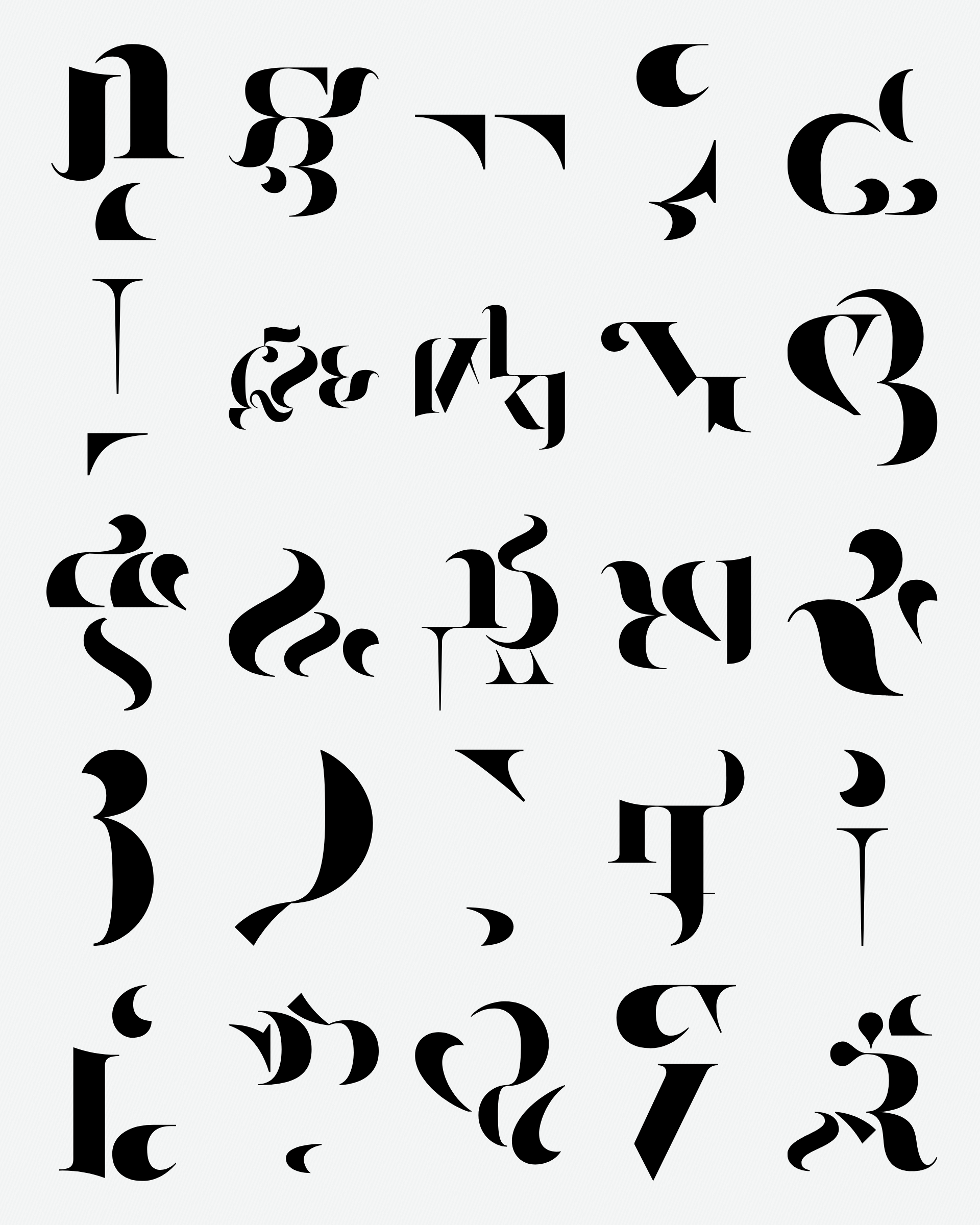 Abstract typographic elements slide together to create new characters. In some compositions, a single character is featured. In others, characters string together to form words and sentences, which the algorithm shapes into often-familiar layouts. // The type designer Gerard Unger said “it is almost impossible to look and read at the same time”. Asemica invites you to look without the burden of legibility. // Created by Emily Edelman, Dima Ofman, and Andrew Badr. Command-S to download a vector file. // Dutch Auction Tiers: 10 / 7 / 5 / 4 / 3.4 / 2.8 / 2.4 / 2 / 1.75 / 1.5 / 1.25 / 1 / 0.75 / 0.5 / 0.25 / 0.1