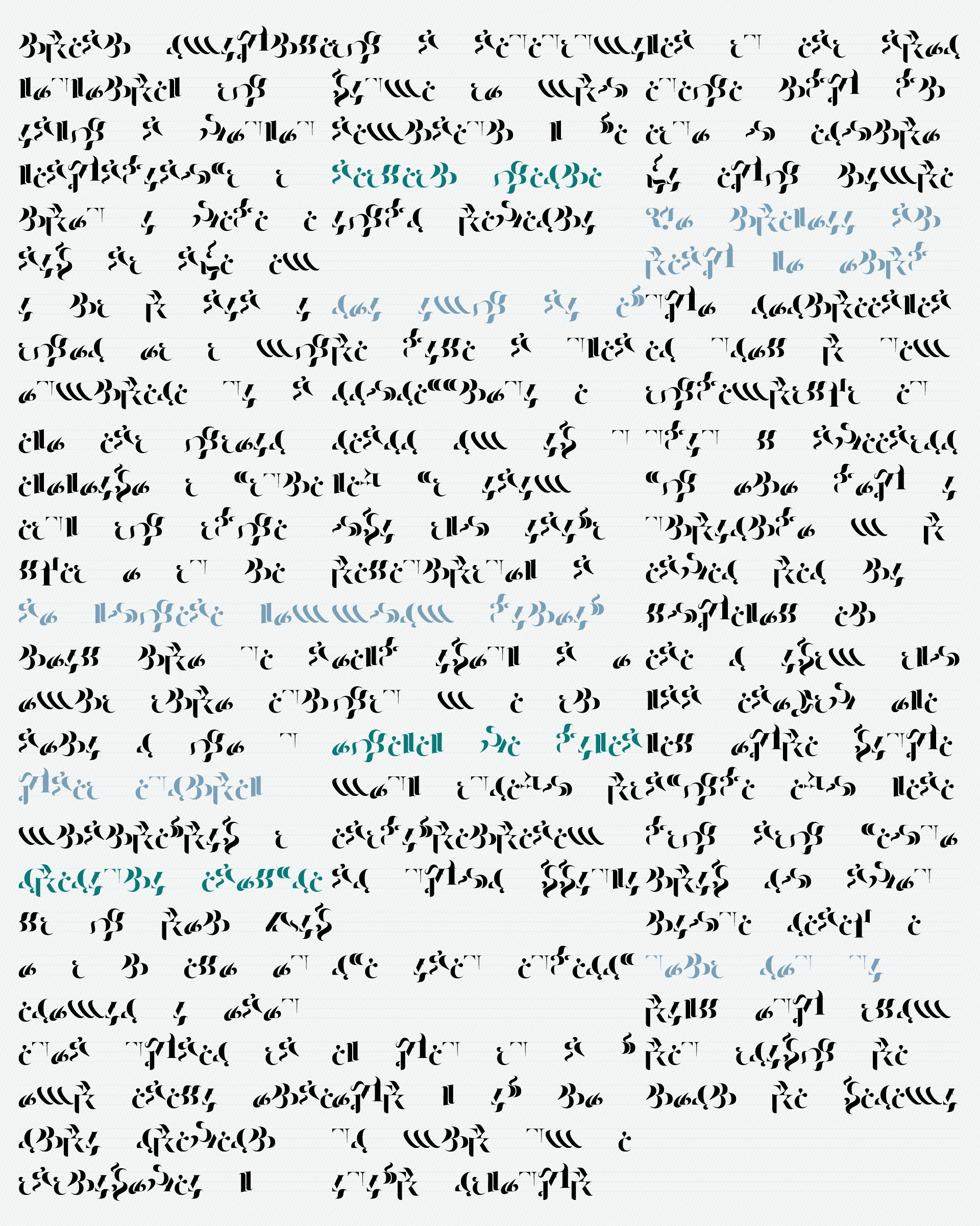 Abstract typographic elements slide together to create new characters. In some compositions, a single character is featured. In others, characters string together to form words and sentences, which the algorithm shapes into often-familiar layouts. // The type designer Gerard Unger said “it is almost impossible to look and read at the same time”. Asemica invites you to look without the burden of legibility. // Created by Emily Edelman, Dima Ofman, and Andrew Badr. Command-S to download a vector file. // Dutch Auction Tiers: 10 / 7 / 5 / 4 / 3.4 / 2.8 / 2.4 / 2 / 1.75 / 1.5 / 1.25 / 1 / 0.75 / 0.5 / 0.25 / 0.1