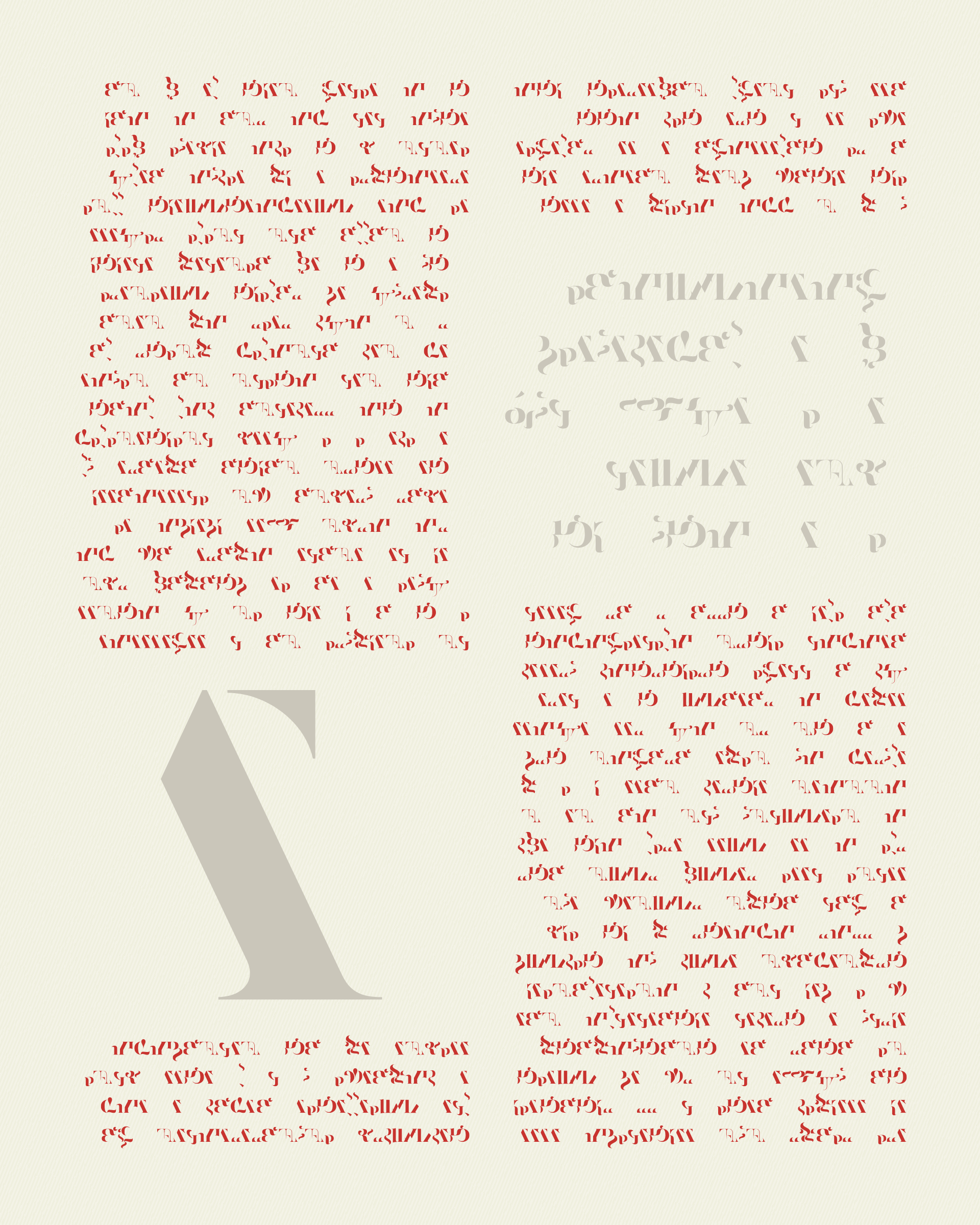 Abstract typographic elements slide together to create new characters. In some compositions, a single character is featured. In others, characters string together to form words and sentences, which the algorithm shapes into often-familiar layouts. // The type designer Gerard Unger said “it is almost impossible to look and read at the same time”. Asemica invites you to look without the burden of legibility. // Created by Emily Edelman, Dima Ofman, and Andrew Badr. Command-S to download a vector file. // Dutch Auction Tiers: 10 / 7 / 5 / 4 / 3.4 / 2.8 / 2.4 / 2 / 1.75 / 1.5 / 1.25 / 1 / 0.75 / 0.5 / 0.25 / 0.1