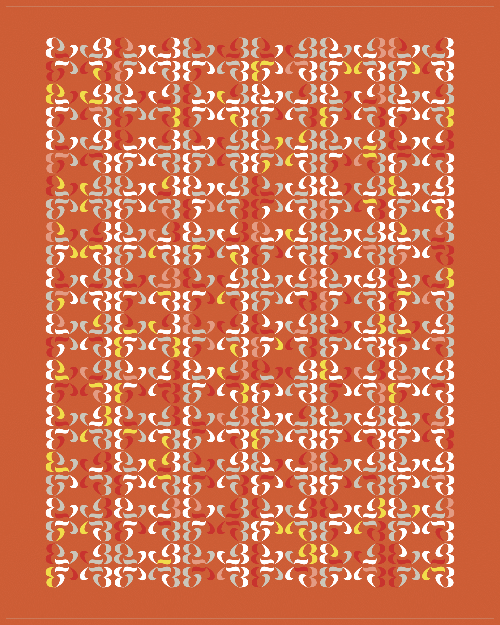 Abstract typographic elements slide together to create new characters. In some compositions, a single character is featured. In others, characters string together to form words and sentences, which the algorithm shapes into often-familiar layouts. // The type designer Gerard Unger said “it is almost impossible to look and read at the same time”. Asemica invites you to look without the burden of legibility. // Created by Emily Edelman, Dima Ofman, and Andrew Badr. Command-S to download a vector file. // Dutch Auction Tiers: 10 / 7 / 5 / 4 / 3.4 / 2.8 / 2.4 / 2 / 1.75 / 1.5 / 1.25 / 1 / 0.75 / 0.5 / 0.25 / 0.1