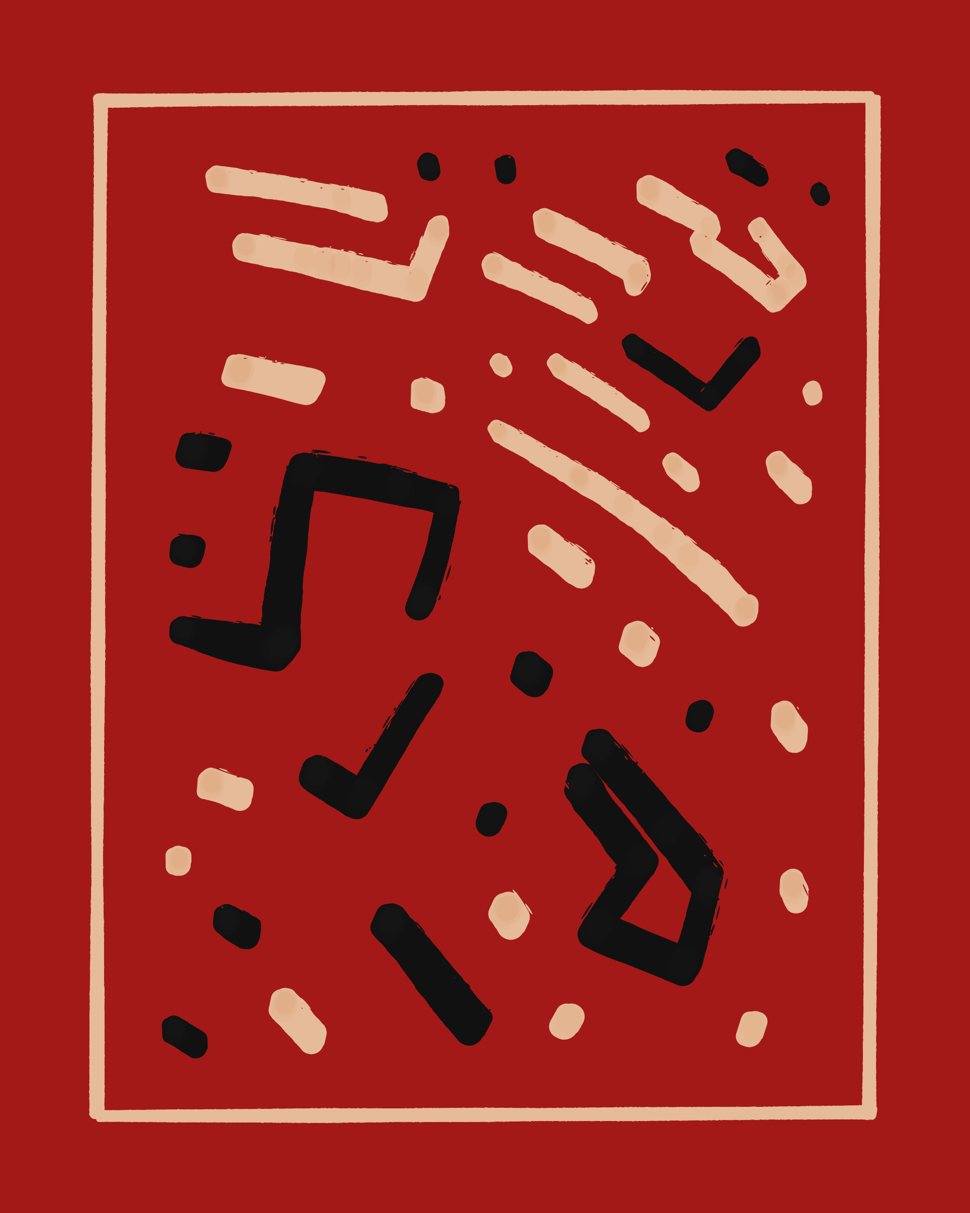 This project explores the age-old computer art phenomenon of inviting the viewer to actively participate in the interpretation of the visual output. The way "Sharp-E" draws the strokes is through a mix of various movements β irregular curves, straight lines, sudden changes in direction β in a classic random walk algorithm, while avoiding overlaps with previously drawn strokes. There are no pre-programmed forms per se, but nevertheless it can be common for the viewer to perceive images, symbols, meaning in the generated output.