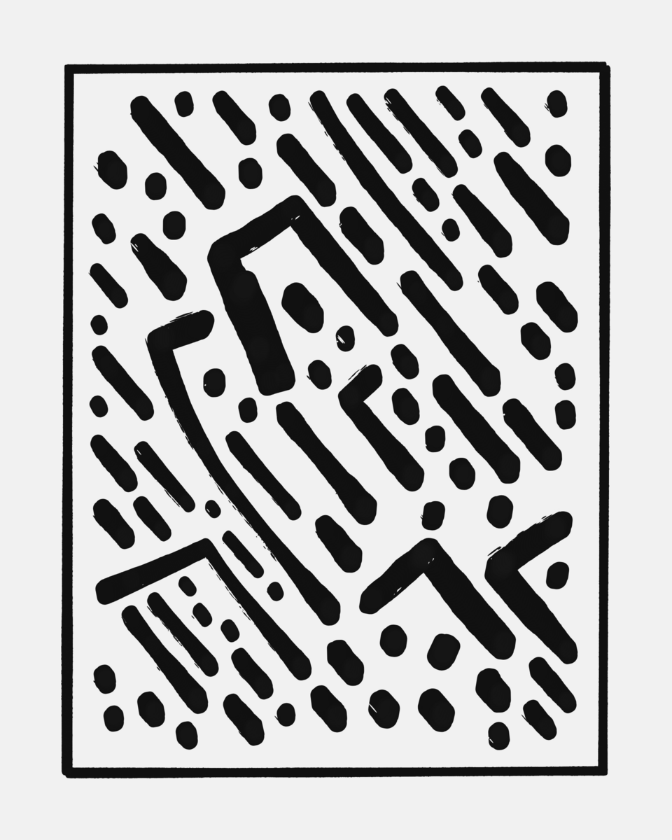 This project explores the age-old computer art phenomenon of inviting the viewer to actively participate in the interpretation of the visual output. The way "Sharp-E" draws the strokes is through a mix of various movements β irregular curves, straight lines, sudden changes in direction β in a classic random walk algorithm, while avoiding overlaps with previously drawn strokes. There are no pre-programmed forms per se, but nevertheless it can be common for the viewer to perceive images, symbols, meaning in the generated output.