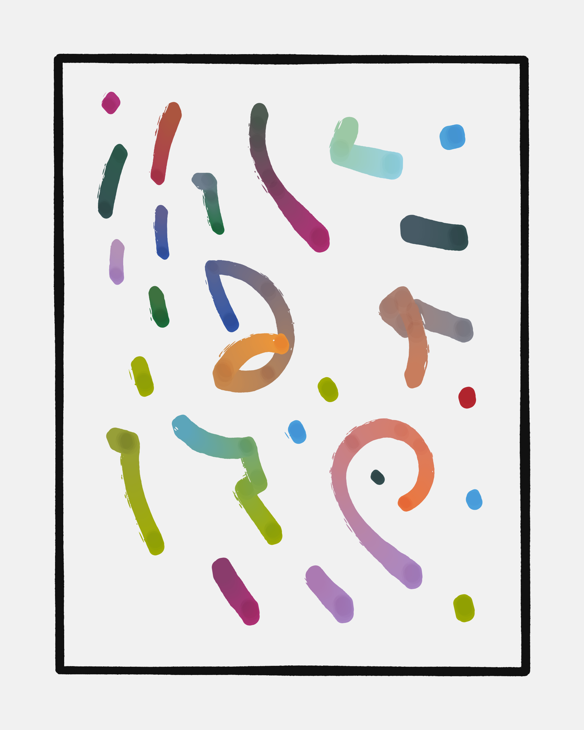 This project explores the age-old computer art phenomenon of inviting the viewer to actively participate in the interpretation of the visual output. The way "Sharp-E" draws the strokes is through a mix of various movements ā irregular curves, straight lines, sudden changes in direction ā in a classic random walk algorithm, while avoiding overlaps with previously drawn strokes. There are no pre-programmed forms per se, but nevertheless it can be common for the viewer to perceive images, symbols, meaning in the generated output.
