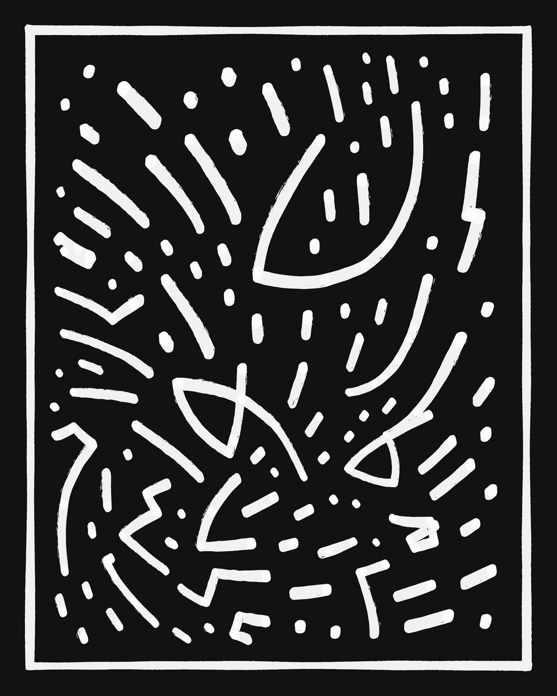 This project explores the age-old computer art phenomenon of inviting the viewer to actively participate in the interpretation of the visual output. The way "Sharp-E" draws the strokes is through a mix of various movements ā irregular curves, straight lines, sudden changes in direction ā in a classic random walk algorithm, while avoiding overlaps with previously drawn strokes. There are no pre-programmed forms per se, but nevertheless it can be common for the viewer to perceive images, symbols, meaning in the generated output.