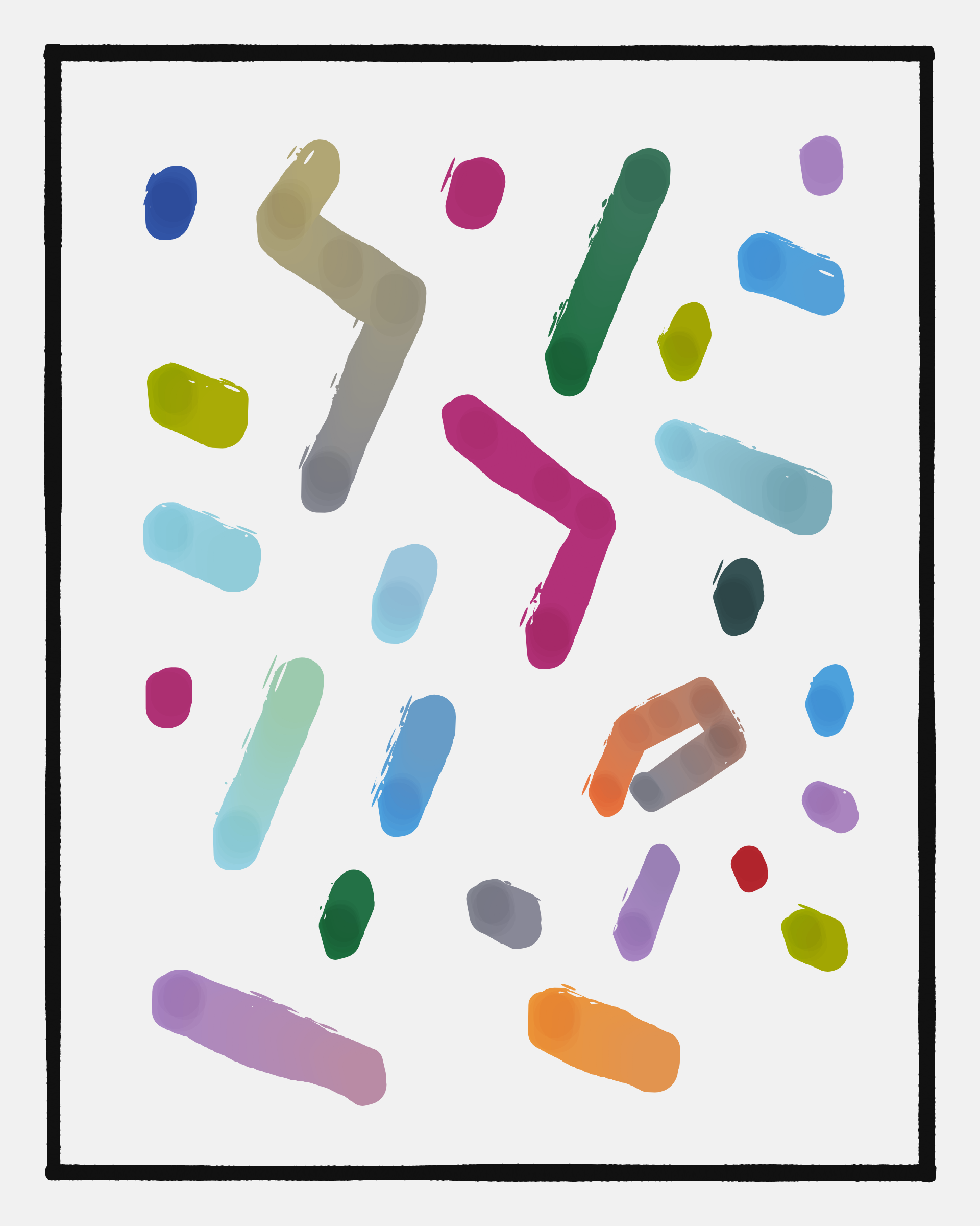 This project explores the age-old computer art phenomenon of inviting the viewer to actively participate in the interpretation of the visual output. The way "Sharp-E" draws the strokes is through a mix of various movements ā irregular curves, straight lines, sudden changes in direction ā in a classic random walk algorithm, while avoiding overlaps with previously drawn strokes. There are no pre-programmed forms per se, but nevertheless it can be common for the viewer to perceive images, symbols, meaning in the generated output.