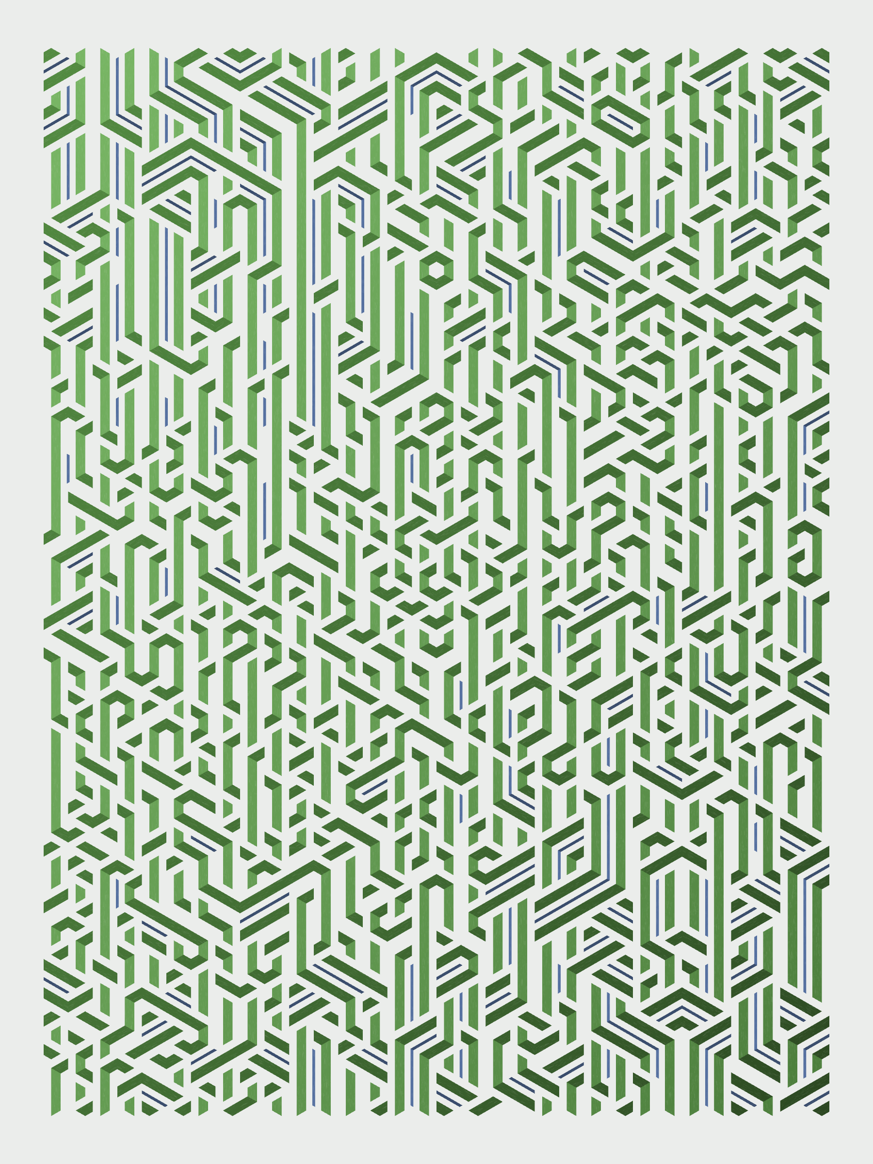Lines are bent and shaded. There are no wrong turns. [Interaction in live view: press 1-7 or left/right arrow keys to see the stages of sketch construction: 1-grid, 2-divide, 3-tile, 4-bend, 5-shade, 6-color, 7-texture]