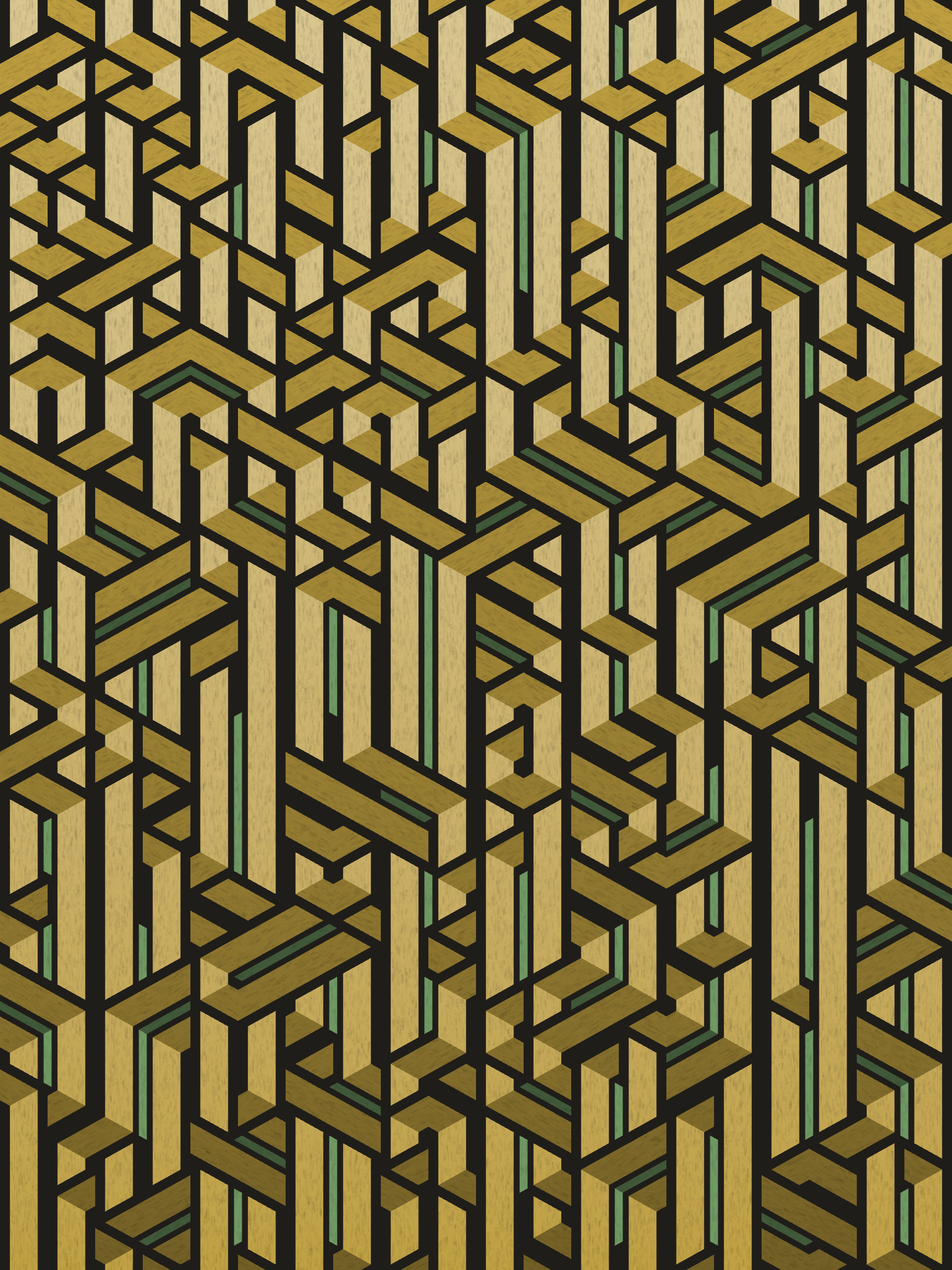 Lines are bent and shaded. There are no wrong turns. [Interaction in live view: press 1-7 or left/right arrow keys to see the stages of sketch construction: 1-grid, 2-divide, 3-tile, 4-bend, 5-shade, 6-color, 7-texture]