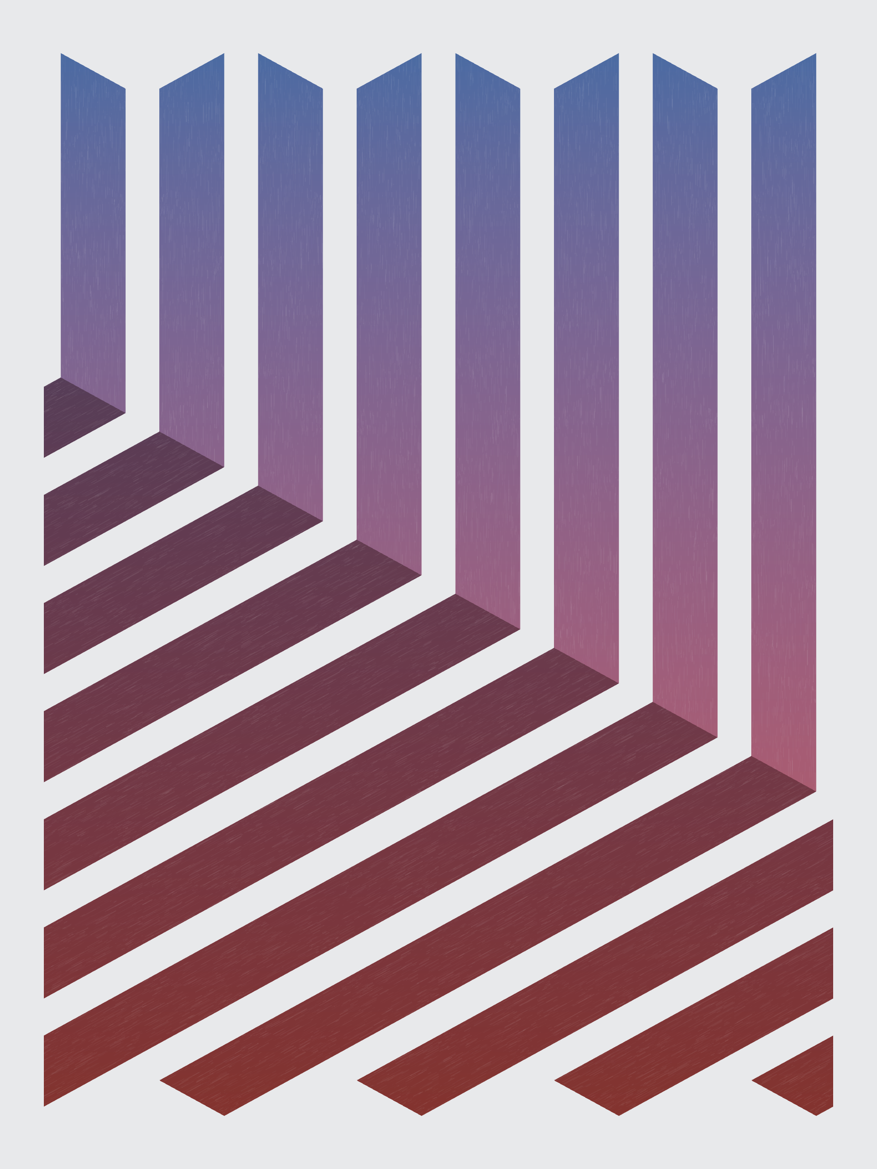 Lines are bent and shaded. There are no wrong turns. [Interaction in live view: press 1-7 or left/right arrow keys to see the stages of sketch construction: 1-grid, 2-divide, 3-tile, 4-bend, 5-shade, 6-color, 7-texture]